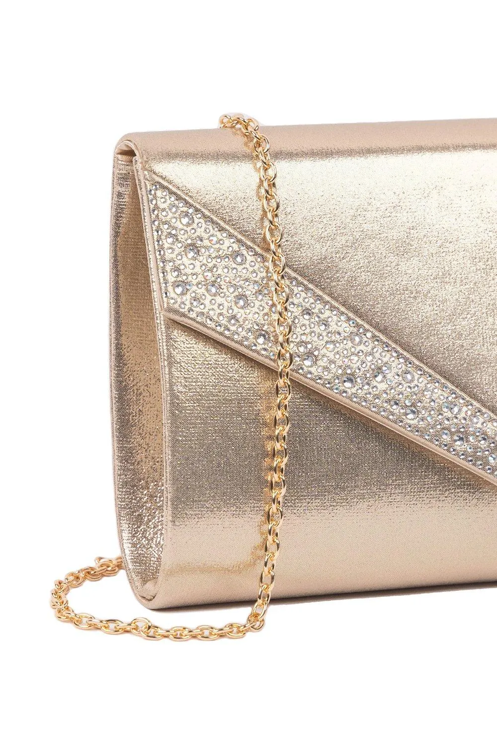 Devora — красивый клатч-конверт, идеально подходящий для особого случая. Печать конверта усыпана кристаллами по мерцающему материалу. Съемная цепочка делает его универсальным в ношении и стиле. Делейни идеально сочетается с королевскими туфлями.