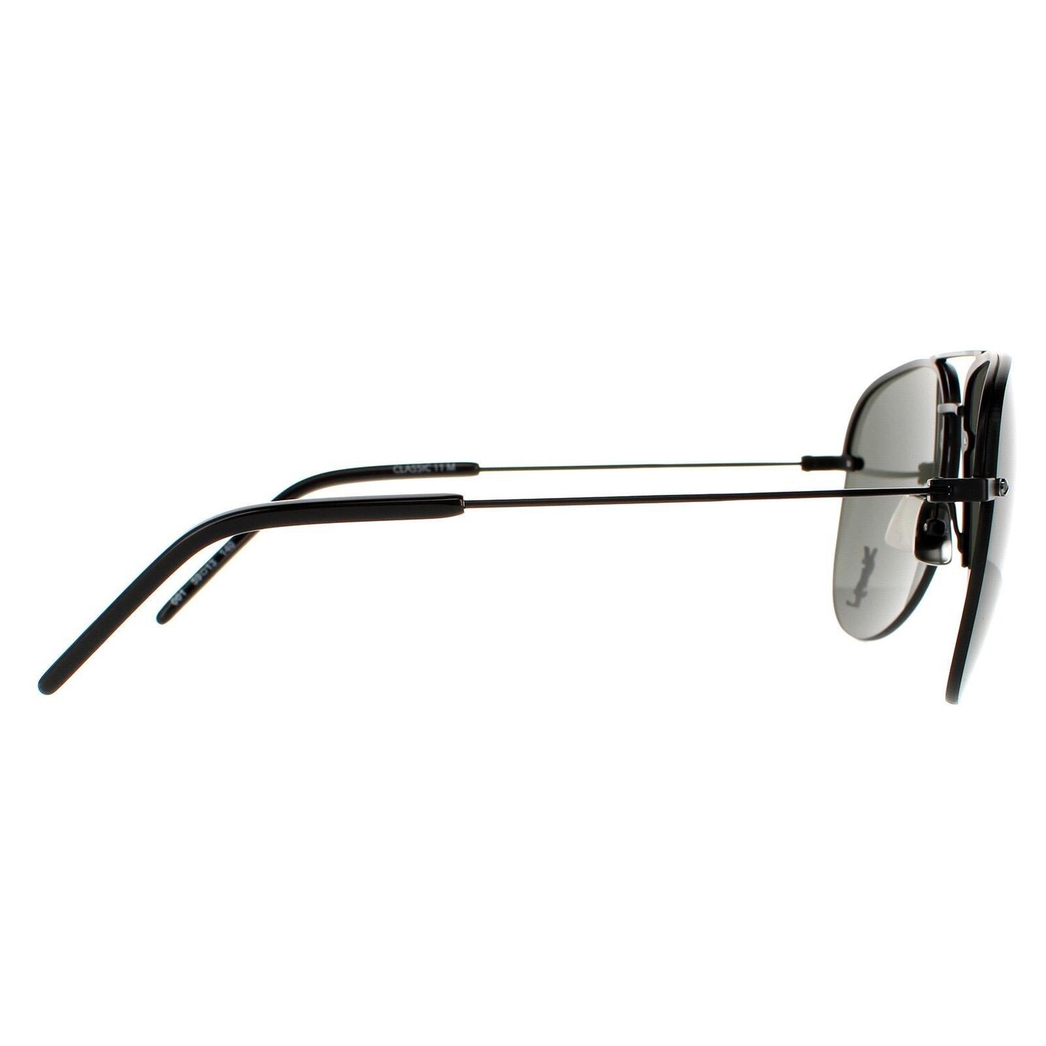SL CLASSIC 11 M 001 Black Grey — это классический дизайн «авиаторов» без оправы со сверхтонкими металлическими дужками, регулируемыми носовыми упорами и пластиковыми кончиками дужек, обеспечивающими комфорт. Одна линза украшена логотипом YSL для обеспечения аутентичности.