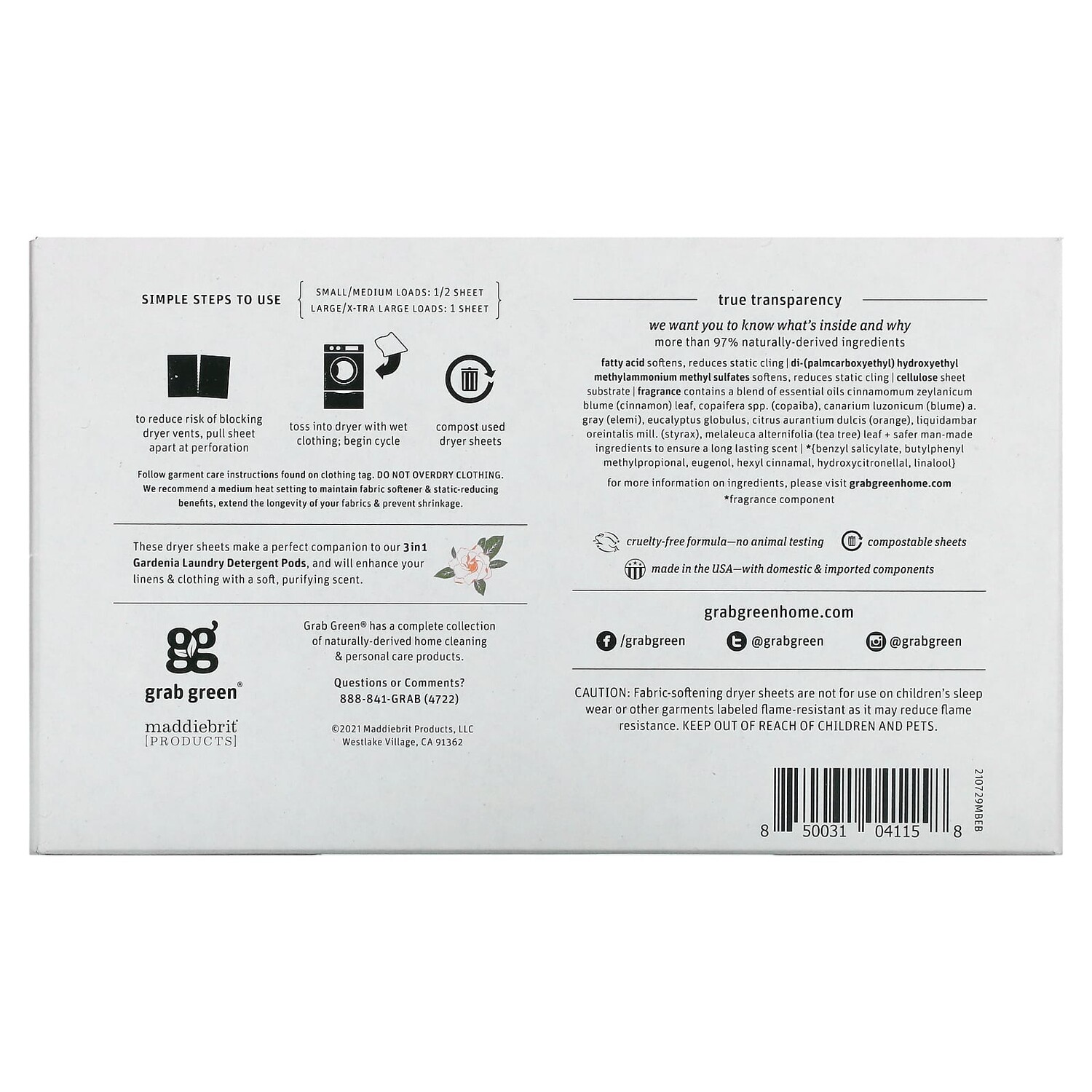 Формула без жестокого обращения. Продукт не тестируется на животных. Биоразлагаемые салфетки. Более 97% ингредиентов природного происхождения. Сделано в США - на внутреннем рынке, импортные комплектующие. Инструкция по применению: Простые рекомендации по применению: Малые, средние нагрузки: 1 / 2 листа Большие, очень большие грузы: 1 лист Чтобы снизить риск закупорки вентиляционных отверстий сушилки, снимите полотно между отверстиями. Бросьте в сушилку с влажной одеждой; начать цикл. Для компоста используются листы для сушки. Следуйте инструкциям по уходу за одеждой, указанным на бирке. Не пересушивайте одежду. Мы рекомендуем использовать средний огонь, чтобы сохранить кондиционер, преимущества снижения статического электричества, продления срока службы ваших тканей; предотвратить усадку. Меры предосторожности: Сушильные салфетки для смягчения ткани не предназначены для использования на детской одежде для сна или другой одежде, имеющей маркировку «Огнестойкая», поскольку они могут снизить огнестойкость. Хранить в месте, недоступном для детей и домашних животных.