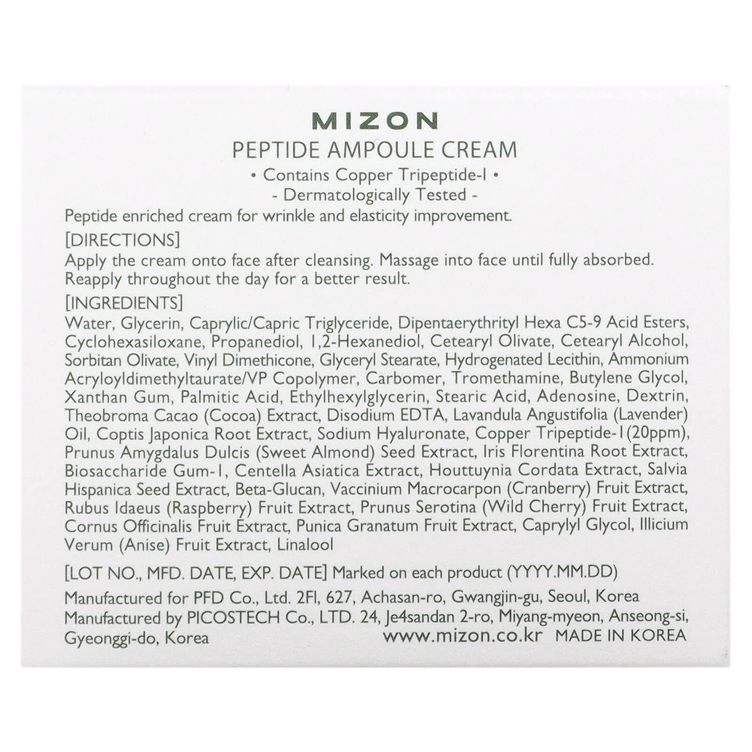 Протестировано дерматологами. Концентрированный крем Крем, обогащенный пептидами, для уменьшения морщин и улучшения эластичности кожи. Инструкция по применению: Нанесите на лицо после использования очищающего средства и тоника. Наносите аккуратными массажными движениями до полного впитывания. Для лучшего результата наносите повторно в течение дня. Меры предосторожности: Не использовать при наличии аллергии на какой-либо из ингредиентов. Прекратите использование и обратитесь к врачу, если во время применения этого продукта возникают такие побочные эффекты, как покраснение, отек или зуд. Не использовать на поврежденной или раздраженной коже. Не наносить на участки кожи с ранами и порезами. Избегать попадания в глаза. Только для наружного применения.