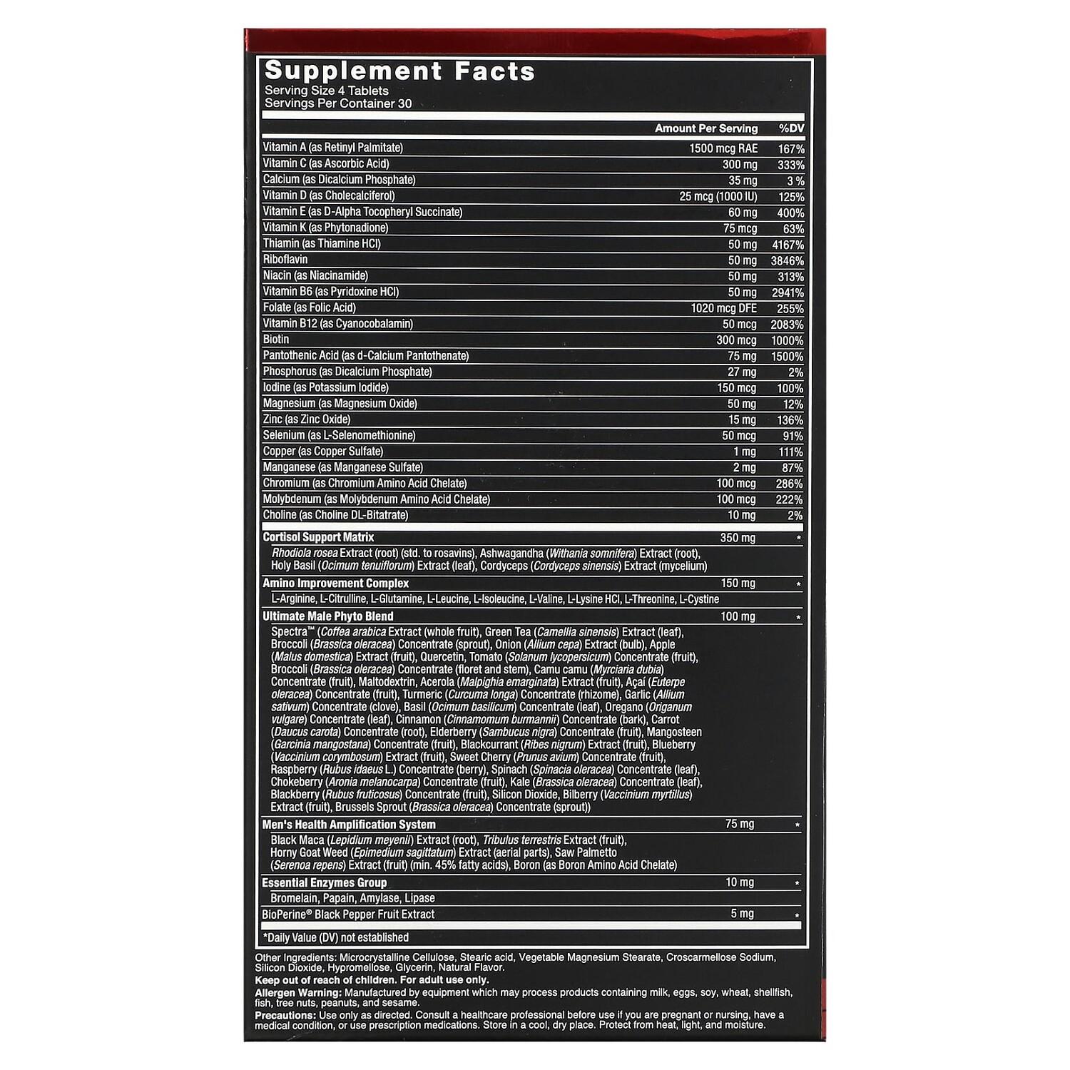 Мультивитамины Test X180 подготавливают ваш организм, чтобы в полной мере ощутить преимущества мощного повышения уровня тестостерона. Он содержит более 50 незаменимых питательных веществ, которые формируют основу мужской жизненной силы, и был разработан специально для мужчин в расцвете сил. Это идеальный мультивитаминный комплекс для мужчин - это не разбавленная формула с недостаточной дозировкой, которая подходит всем, а специально подобранные соединения, которые помогают улучшить ваше здоровье и достичь невероятных результатов.