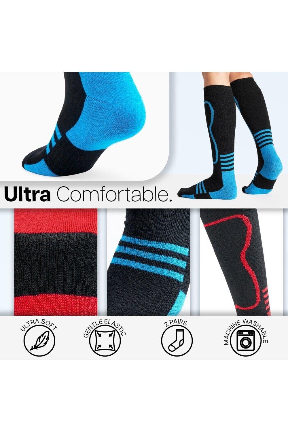 Женские и мужские лыжные носки CityComfort. Эти носки легкие, но уютные и сохраняют тепло, сохраняя при этом воздухопроницаемость, что делает их идеальными для занятий спортом в холодную погоду и легко упаковываемыми в поездки. Идеально подходят для катания на лыжах, сноуборде, пеших прогулок или активного отдыха. Они очень теплые и мягкие и согреют ваши ступни и голени в непогоду. Они не только теплые и удобные, но также оснащены ребристой манжетой, которая помогает удерживать их на месте, что бы вы ни делали. Выбирайте между упаковка из 5 штук (включая желтый, синий, зеленый, оранжевый и красный) или упаковка из 2 штук (красный и синий)