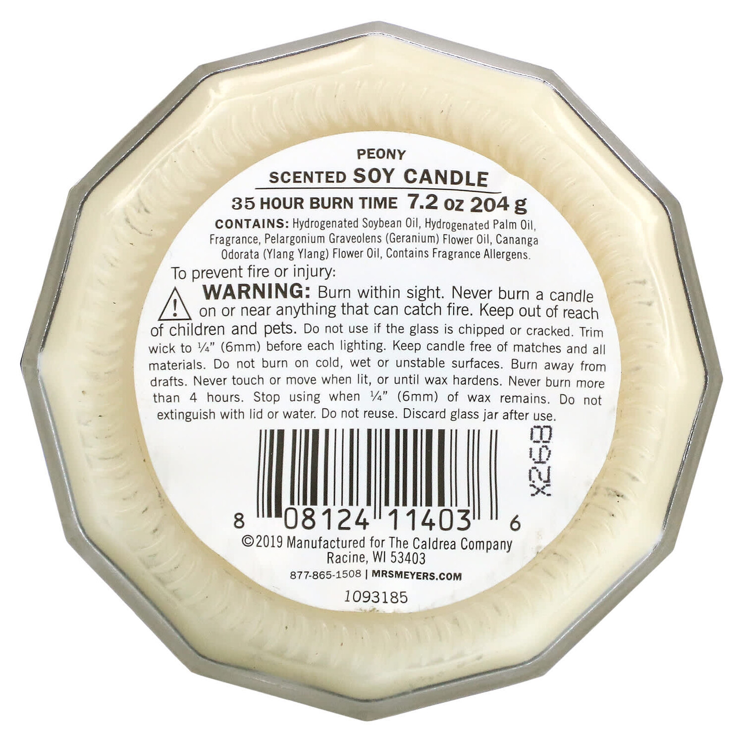Пионовая Свеча Mrs. Meyers Clean Day, 204 г