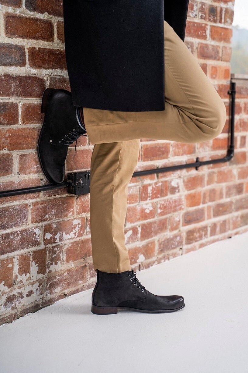 Вневременные кожаные ботинки на шнуровке черного цвета с контрастным кожаным средним каблуком. Эти универсальные ботинки сочетают в себе как нарядный, так и повседневный образ, подошва исключительного качества с рифленым захватом обеспечивает устойчивость и комфорт.