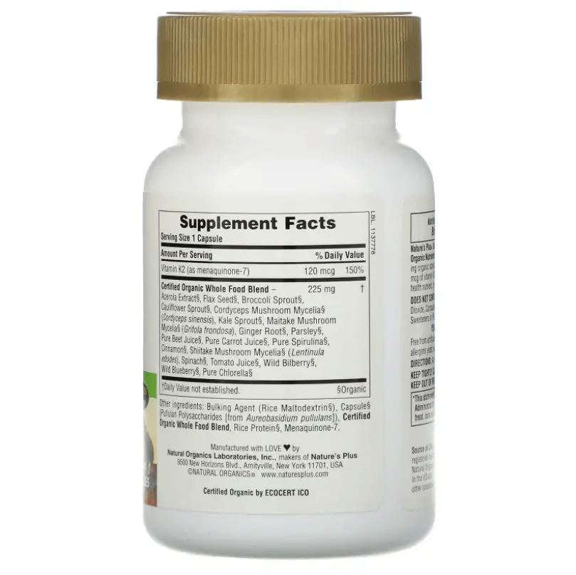 Витамин К2 Nature’s Plus, 60 капсул играет важную роль в процессах свертываемости крови, подходит вегетарианцам, обеспечивает нормальный кальциевый обмен. Содержит 120 мкг витамина K2.