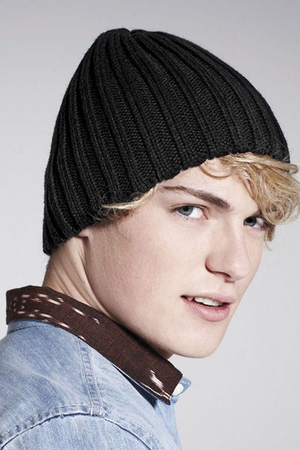 Массивная зимняя шапка-бини в рубчик Beechfield, черный