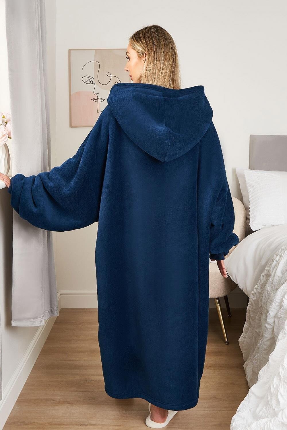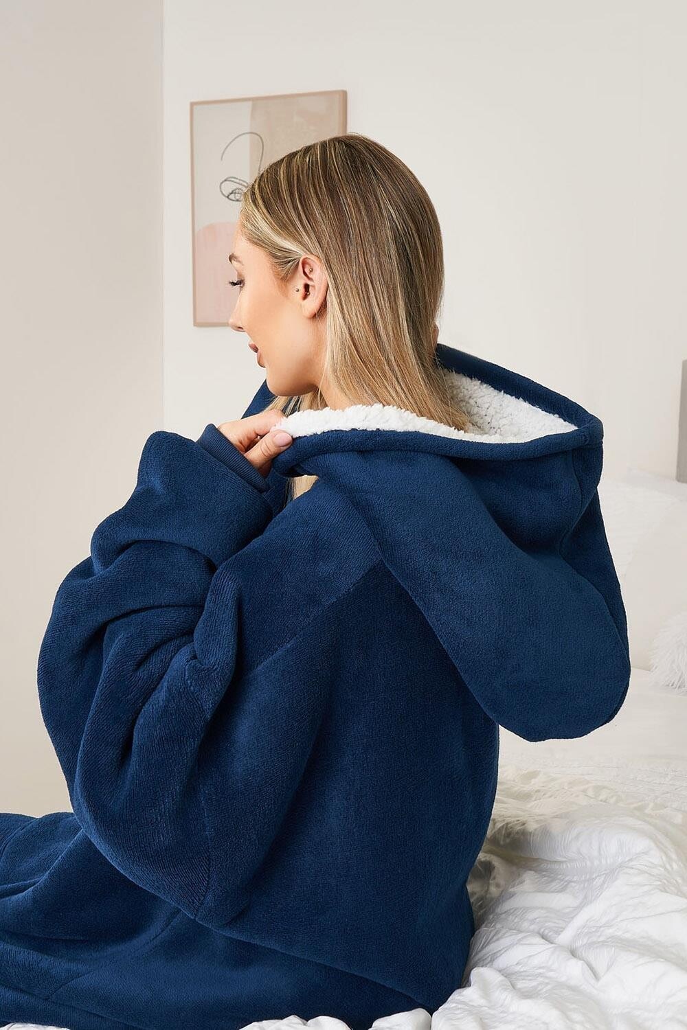 Длинное одеяло с капюшоном из флиса из шерпы большого размера Sienna, синий