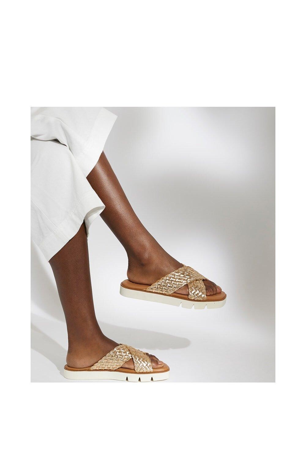 Безвременье сочетается с привлекательностью в этих непринужденных стильных шлепанцах Lexey. Перекрещивающиеся ремешки имеют зубчатую форму и затейливо переплетены из роскошной кожи, а подошва в байкерском стиле мгновенно придает нотку современности.