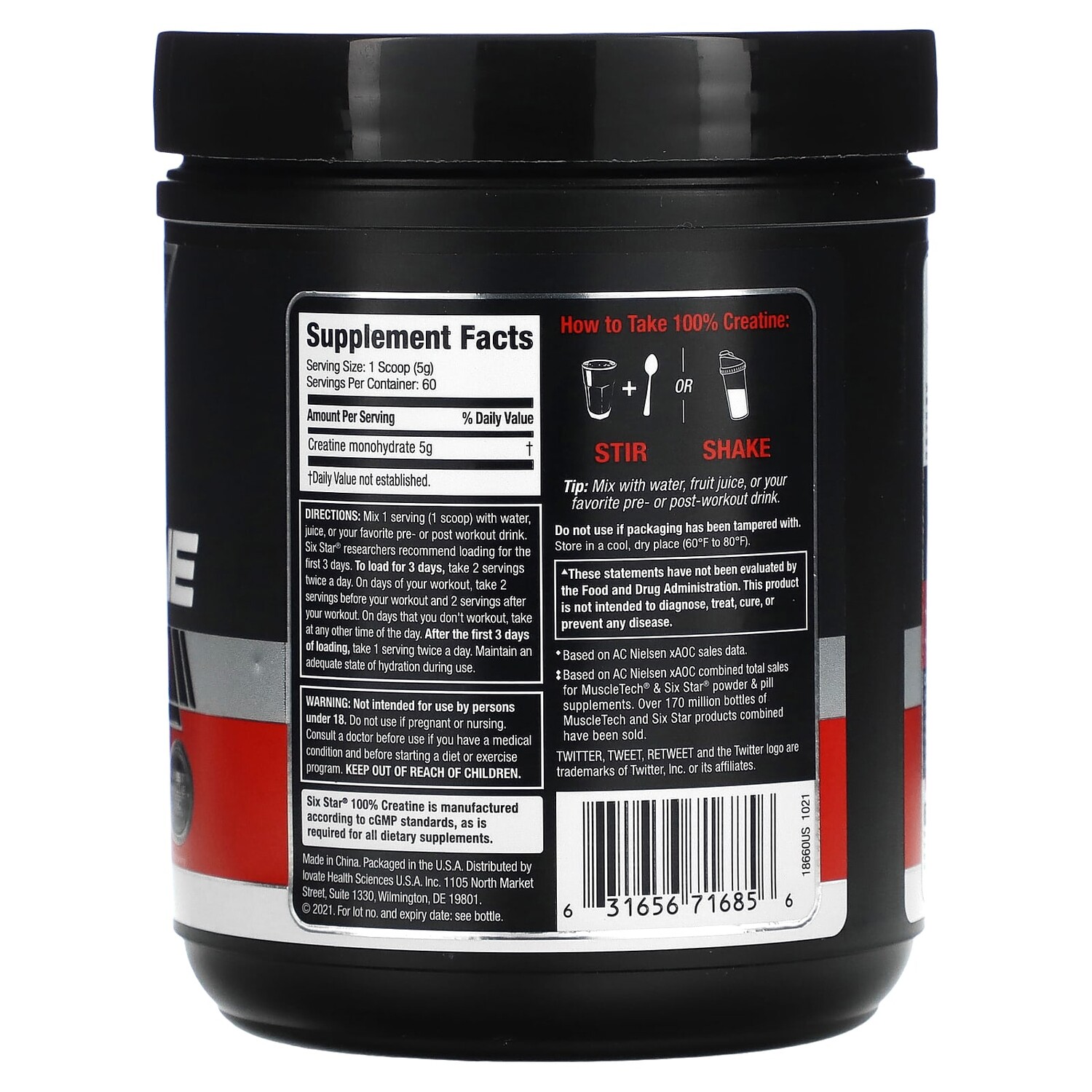 100% креатин Six Star от создателей MuscleTech, поэтому вы знаете, что это эффективная формула, которой можно доверять. Будь то первый раз в тренажерном зале, опытный ветеринар, профессиональный спортсмен или просто пытаетесь получить дополнительные преимущества в своем виде спорта, каждый является спортсменом, и каждый спортсмен должен подпитывать свой организм лучшими продуктами для спортивного питания. доступно. 100% креатин Six Star, созданный на основе клинически подтвержденной дозы моногидрата креатина - наиболее изученной из доступных форм креатина - без каких-либо добавленных ингредиентов, наполнителей или добавок, является топливом, необходимым для наращивания мышечной массы, силы и производительности. для всех спортсменов.