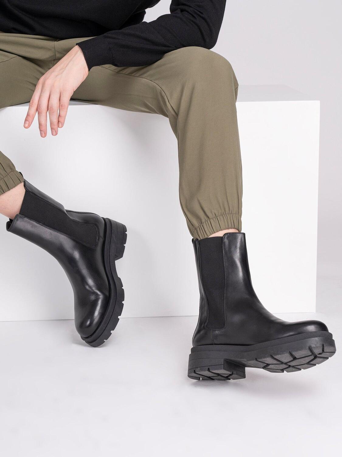 Наши черные массивные ботинки челси Bank — незаменимая вещь в гардеробе в этом сезоне. Они оснащены эластичными боковыми вставками и кожаным язычком, позволяющим легко надевать и снимать обувь.