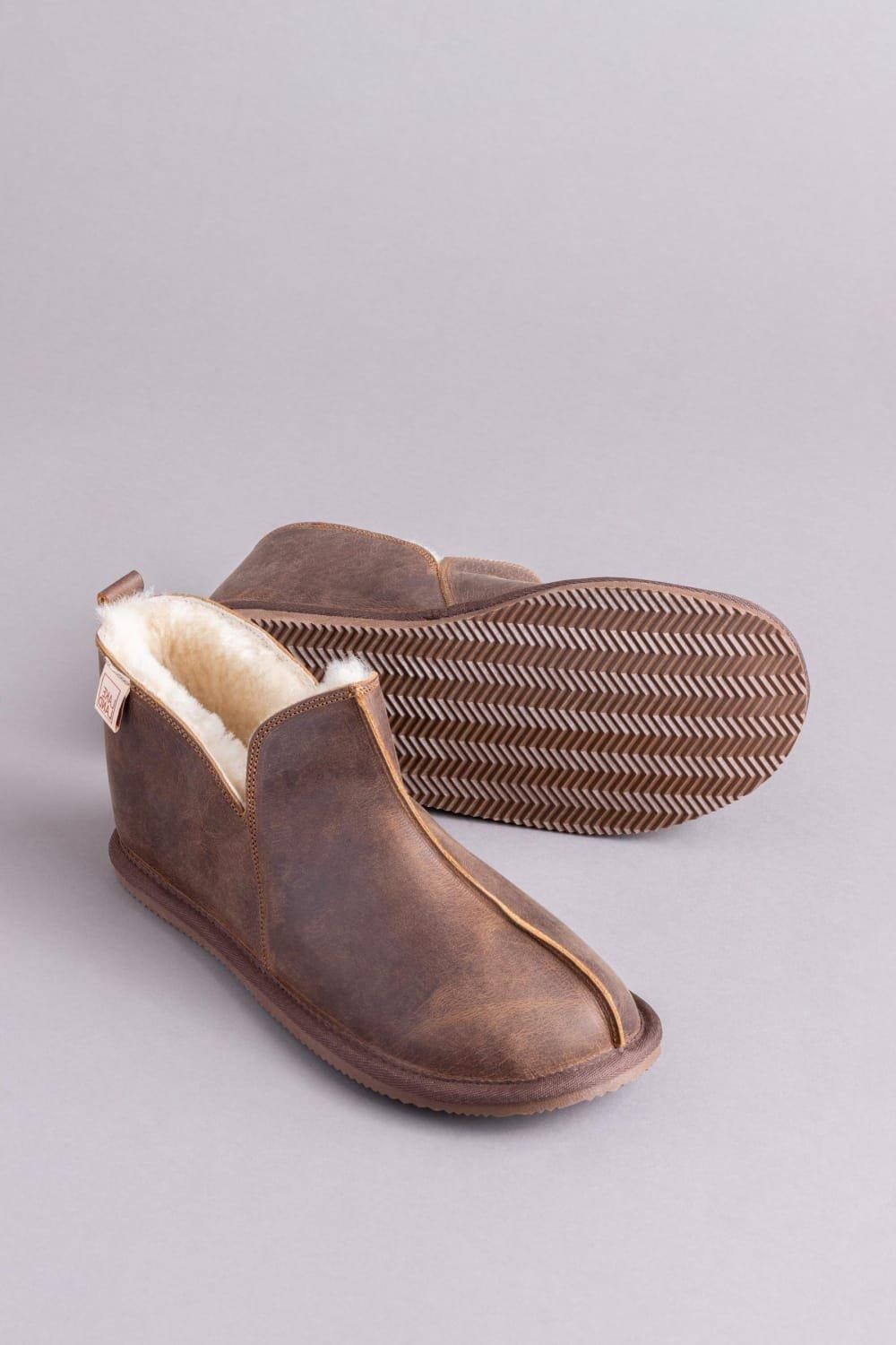 Кожаные тапочки в винтажном стиле от Lakeland Leather. Изготовлено вручную из невероятно мягкой 100% овчины с характерным разрезным швом и отделкой из кожи наппалана. Ботинки с более высокой лодыжкой и шерстяная подкладка созданы для предстоящих холодных вечеров. Прочная резиновая подошва и мягкая стелька с воздушным карманом для дополнительного комфорта.