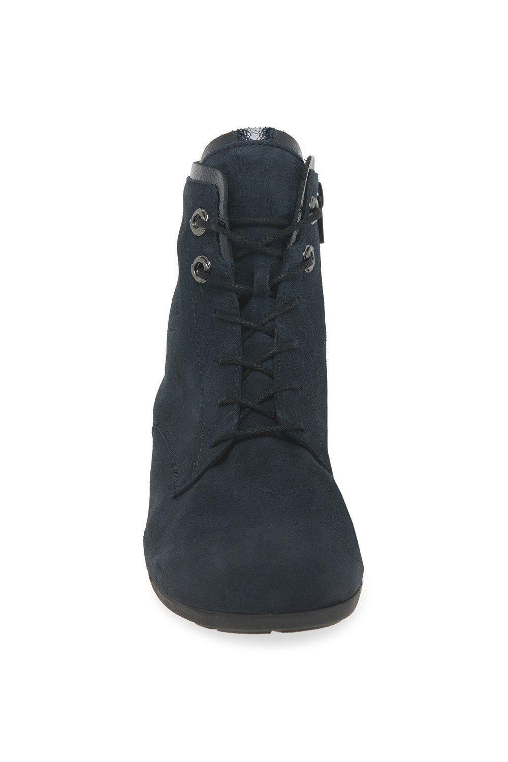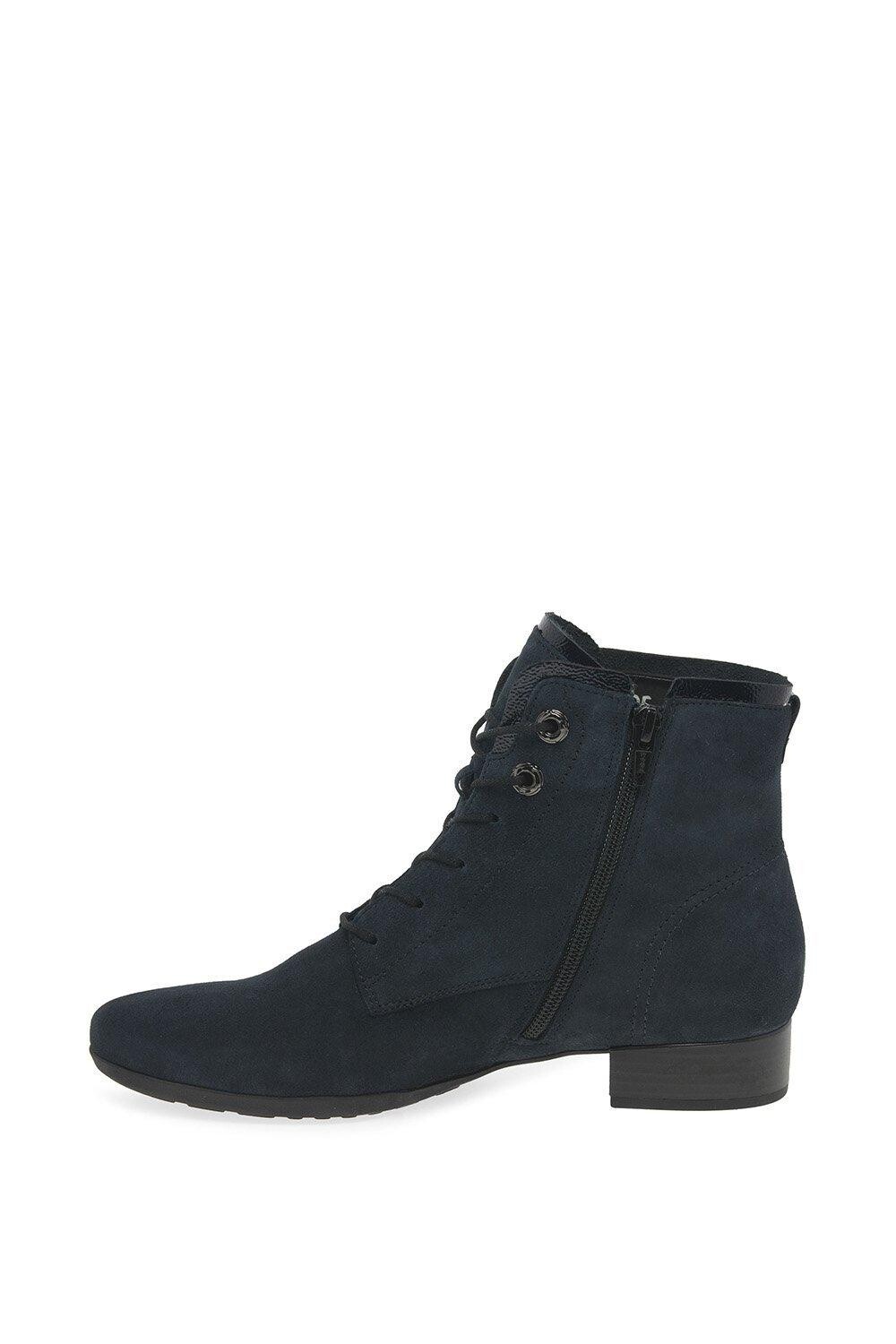 Узкие, широкие ботинки Gabor Boat фиксируются внутренними молниями, а также передней шнуровкой для оптимальной посадки. Металлическая отделка во всем дизайне с верхом из мягкой замши привлекает внимание.