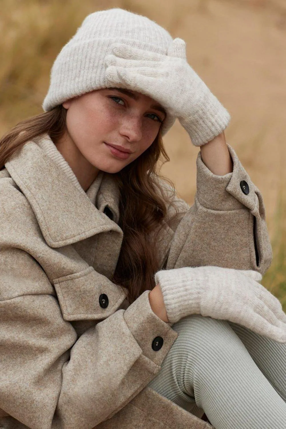 Внешние материалы: 74 % акрил, 23 % нейлон, 3 % эластан. Материал подкладки: 100% нейлон. Ткань: трикотаж, меланж, софт тач, пряжа. Манжета: Ребристая.
