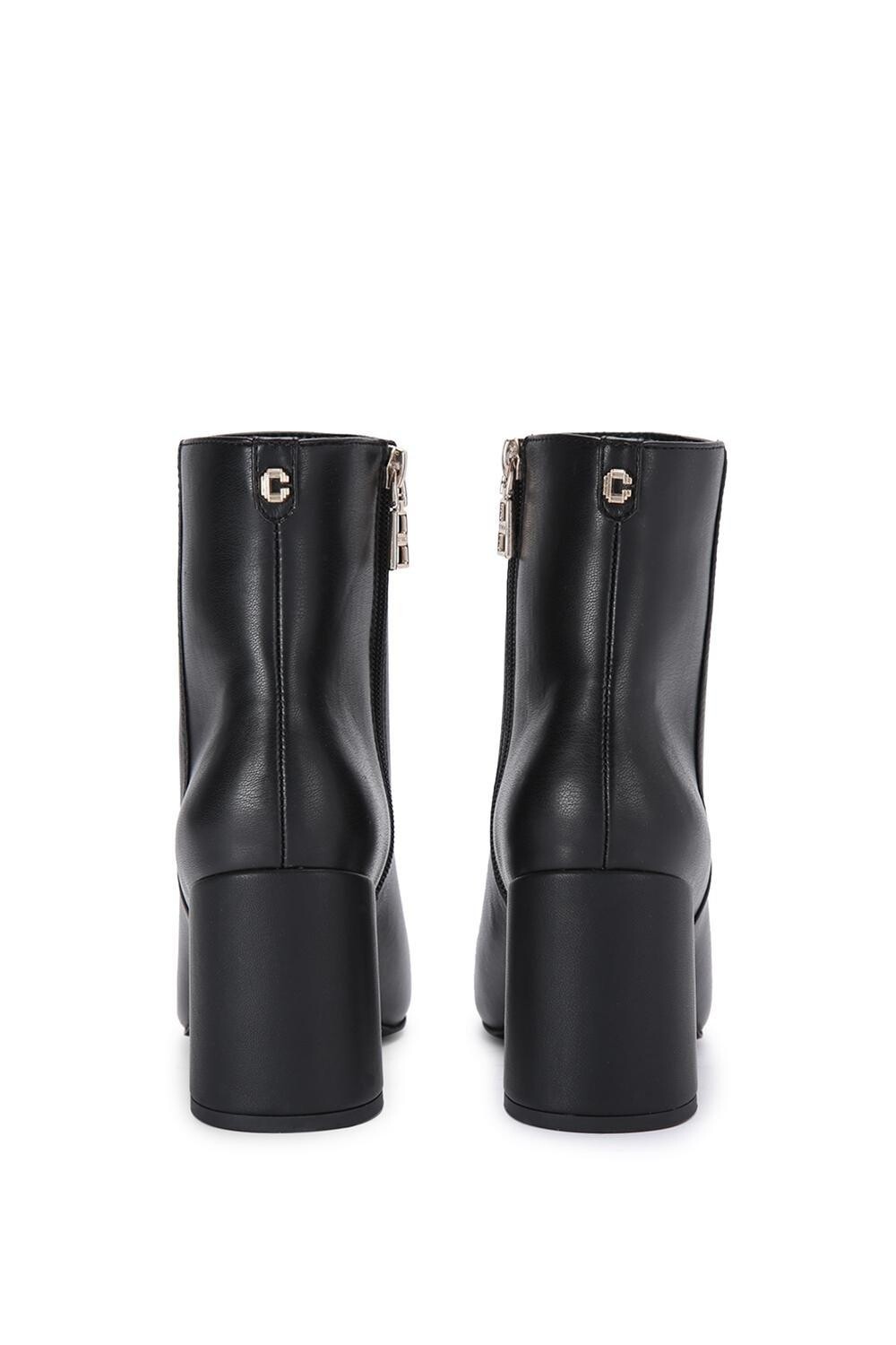 Ботинки Carvela Willow Ankle имеют гладкий черный верх и молнию золотистого цвета на внутренней стороне лодыжки. Носок закругленный, пятка блочная. Высота каблука: 80 мм.