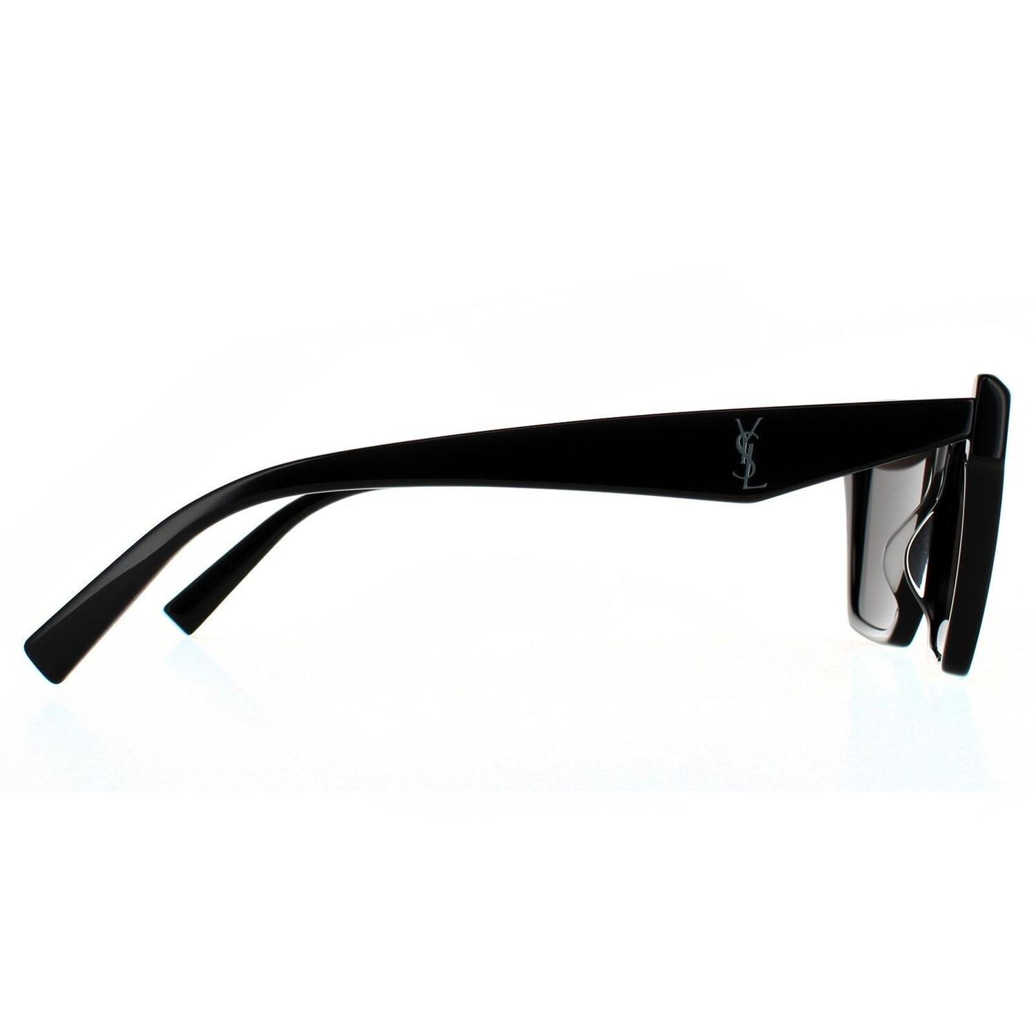 SL M103 002 Black Black — это массивные очки «кошачий глаз» с преувеличенными угловыми изгибами и логотипом YSL на угловатых заушниках.