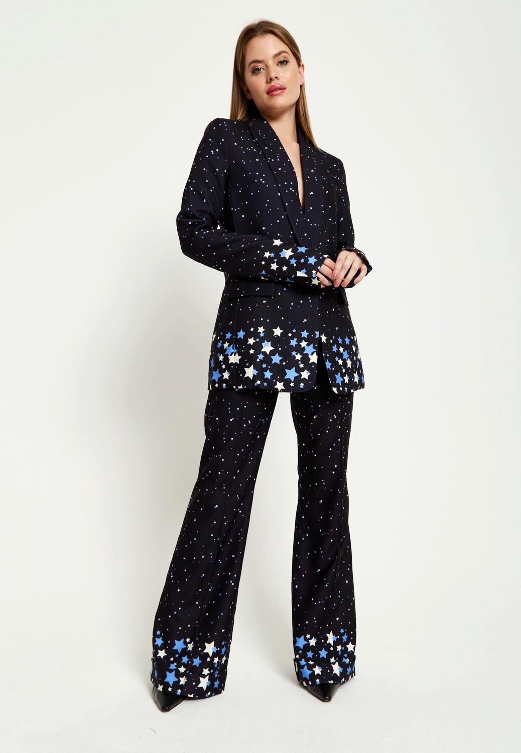 Круглый воротник, Индивидуальный крой, Длинные рукава, Принт со звездами