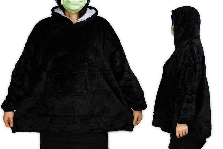 Удобное одеяло с капюшоном из шерпы большого размера, один размер Leaper, черный