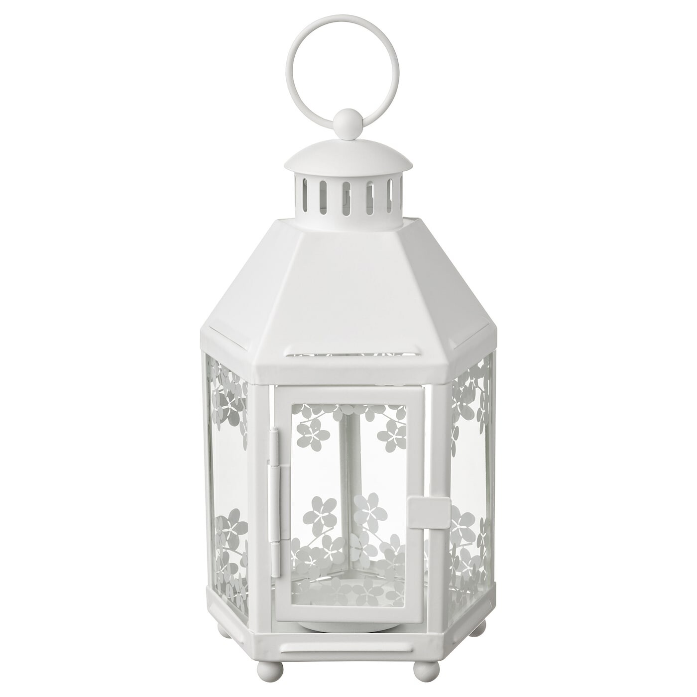 Теплый свет свечи красиво переливается через декоративный фонарь.