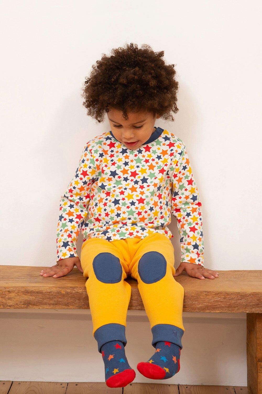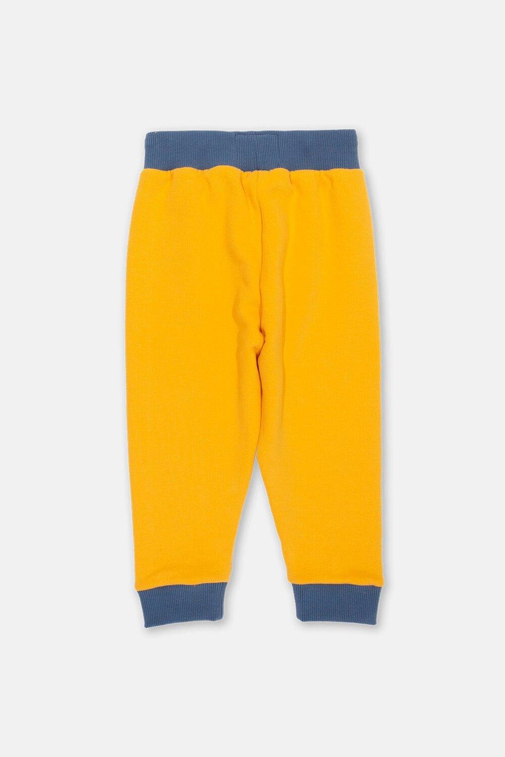 Приготовьтесь к отличному дню в этих великолепных желтых спортивных штанах из пчелиного воска! С контрастными темно-синими нашивками на коленях, которые придадут забавный вид и защитят колени вашего малыша от царапин и потертостей во время приключений. Сочетайте его с футболкой в ​​тон, чтобы создать максимально комфортный образ.
