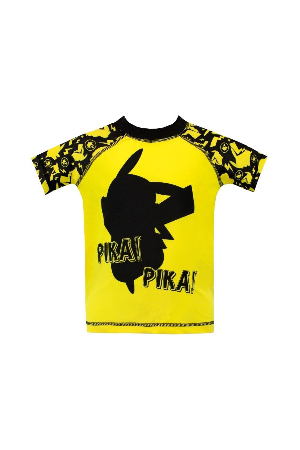 Комплект для плавания с покемонами для мальчиков. Каждому тренеру покемонов понравится иметь этот потрясающий купальник из двух частей в своем Pokedex! Идеально подходит для ловли любых волн: на верху изображен легендарный Пикачу с надписью «Пика!» Пика! на ярко выраженном желтом фоне. Наряду с короткими рукавами и плавками с крутым принтом в виде силуэта Пикачу, этот купальный костюм идеально подходит для коллекционеров!