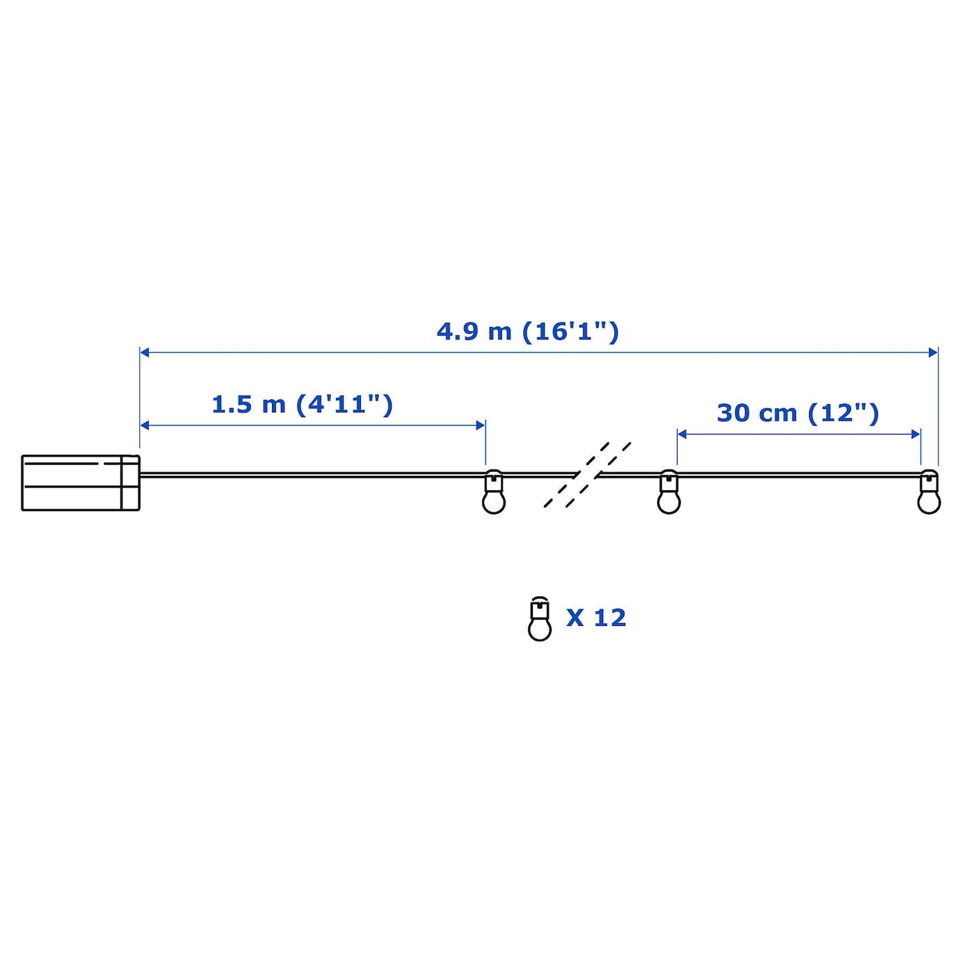 Длина шнура между лампами: 30 см