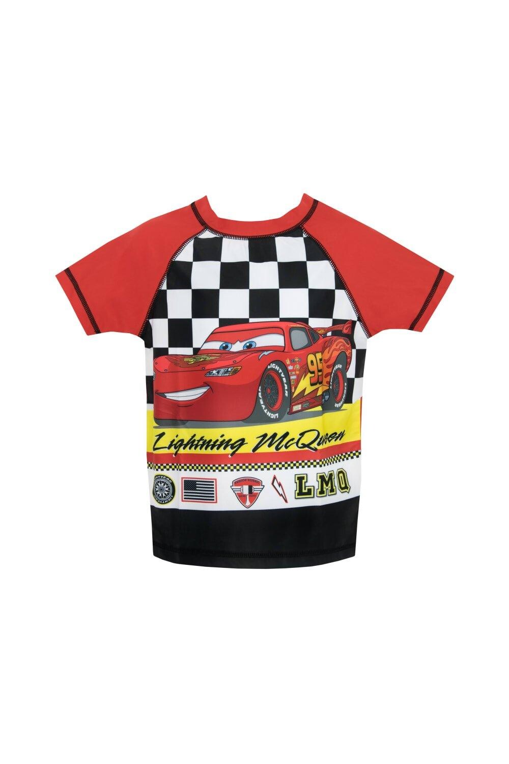 Детский набор для плавания с машинками Диснея, состоящий из двух частей. Будь то бассейн или твердая почва, ваш маленький гонщик всегда будет победителем с этим потрясающим набором для плавания Cars. Эти крутые плавки с Lightinig McQueen на клетчатом фоне, контрастными красными рукавами и шортами станут обязательным элементом их летнего гардероба!