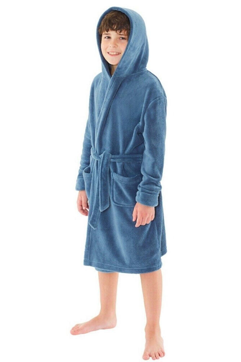 Детский супермягкий флисовый халат - идеален для деток постарше и в подарок! Модель с капюшоном, манжетами с отворотами, запахом спереди, завязывающимся ремнем и двумя передними карманами. Код продукта: 01-39128WE.