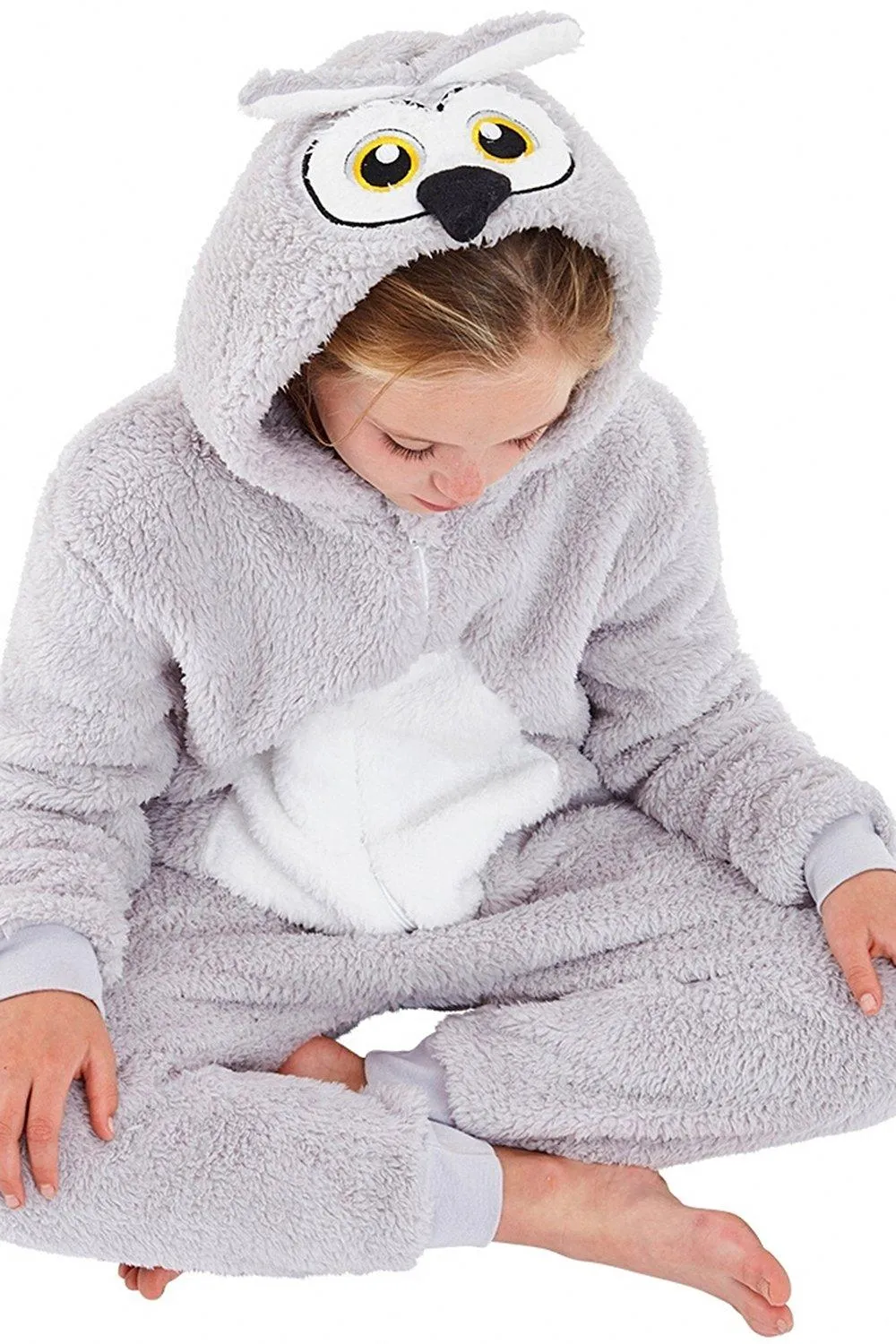 Детский супермягкий комбинезон с изображением совы - идеально подходит для маленьких детей и в качестве подарка! На капюшоне вышита милая мордочка, носик и 3D уши совы, животик контрастного цвета. Мягкая пушистая флисовая ткань. Молния спереди, рукава и штанины с манжетами. Код товара: 01-0237001.