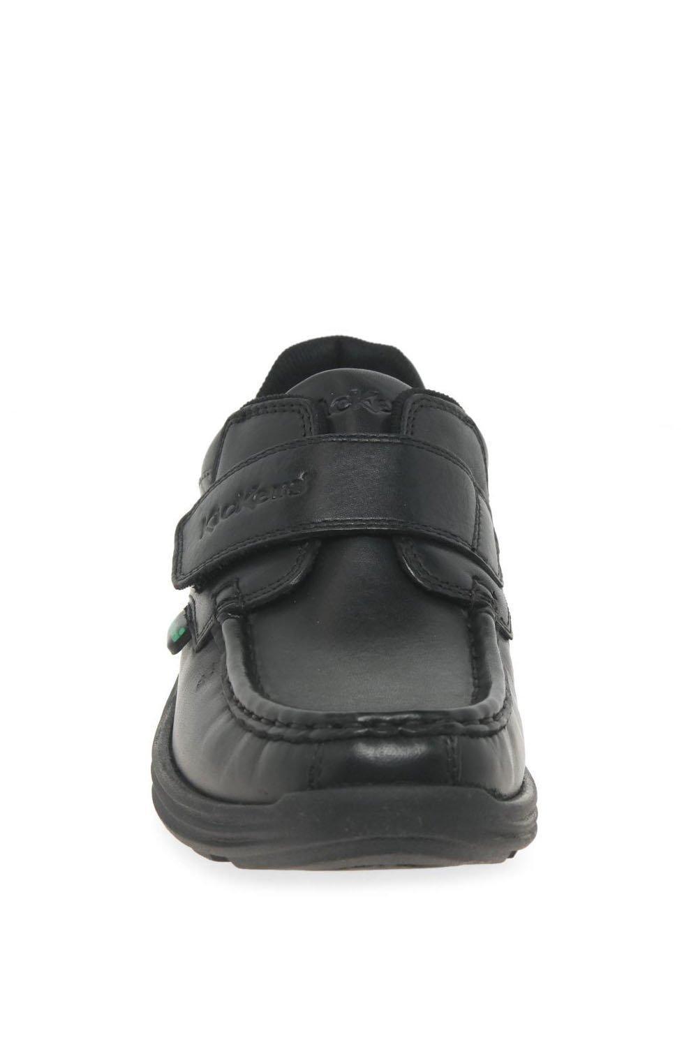 Школьные туфли Kickers Reasan Strap представляют собой пару черных кожаных туфель в стиле мокасин с застежкой на ремешок и антимикробной подкладкой Micro-Fresh.