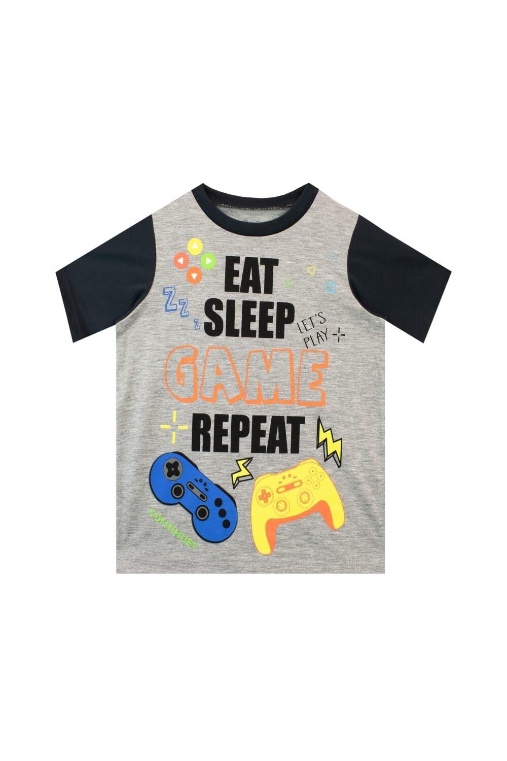 Игровая пижама для мальчиков. Ваш маленький геймер пройдет уровни в этом потрясающем игровом пижамном наборе! В этом пижаме для геймера, разработанном Гарри Беаром, имеется надпись «Ешь, спи, повторяй игру», написанная с мотивом игрового контроллера ниже. Вечер сражений был бы неполным без шорт с изображением игровых контроллеров. Эти пижамы премиум-качества, изготовленные из сверхмягкого и эластичного материала, идеально подходят для игровых марафонов!