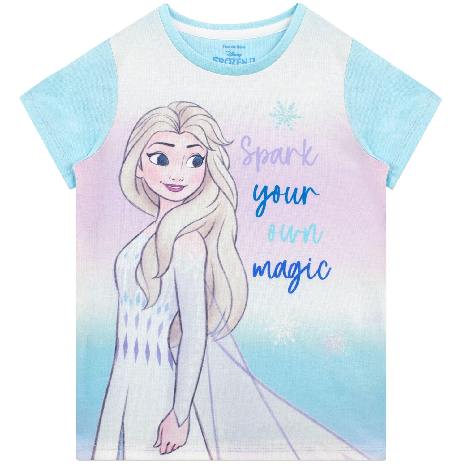 Ваша маленькая ледяная королева сможет мечтать о зимних приключениях в этой сказочной короткой пижаме Frozen! В ледяной синей пижаме ни один поклонник принцесс Диснея никогда не захочет расставаться с этой пижамой! Наверху изображена Эльза в окружении снежинок с надписью «Искрой свое волшебство». Подходящие шорты дополняют этот комплект с изображением Эльзы и звезд. Идеальные вареники для приключений в Эренделле!