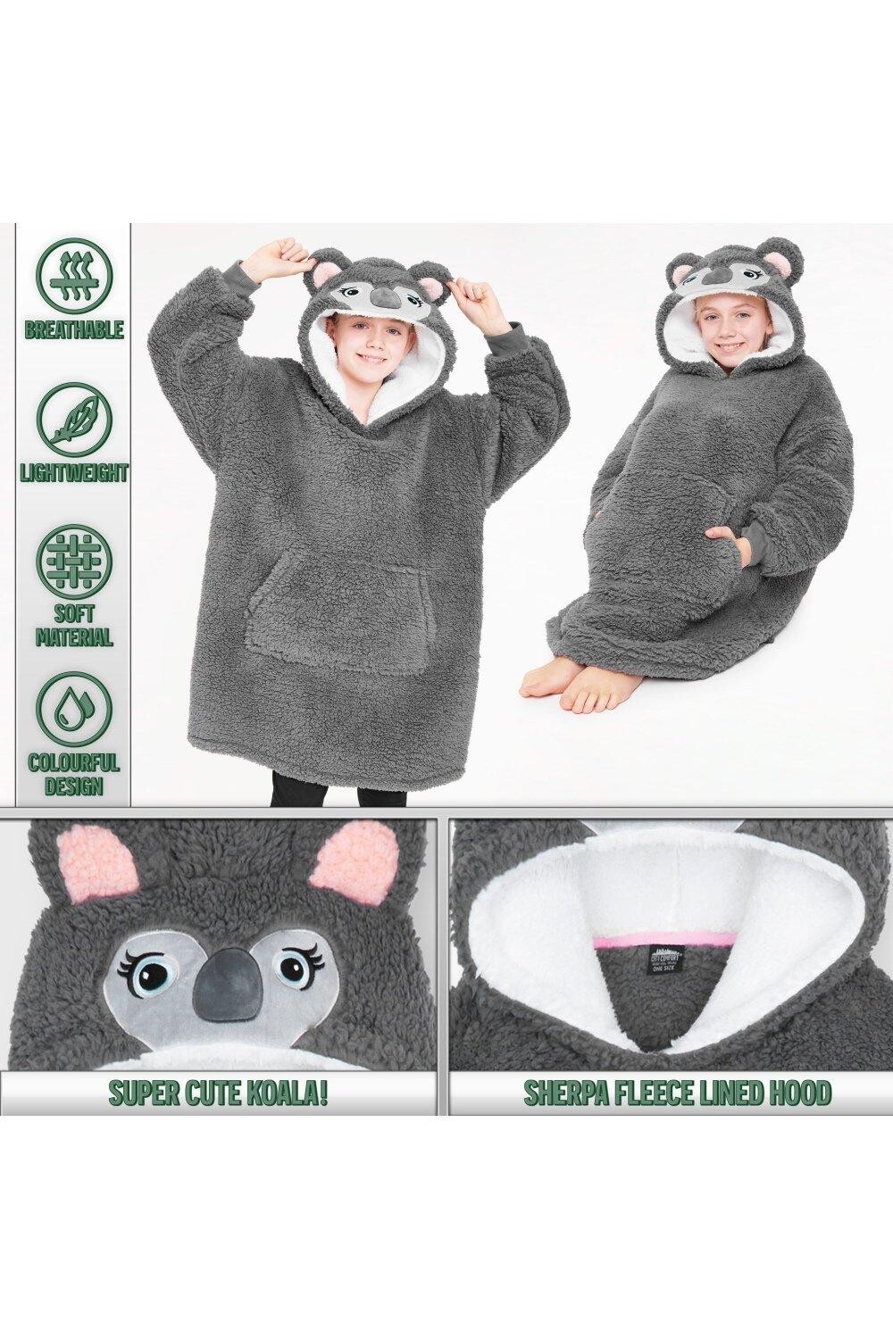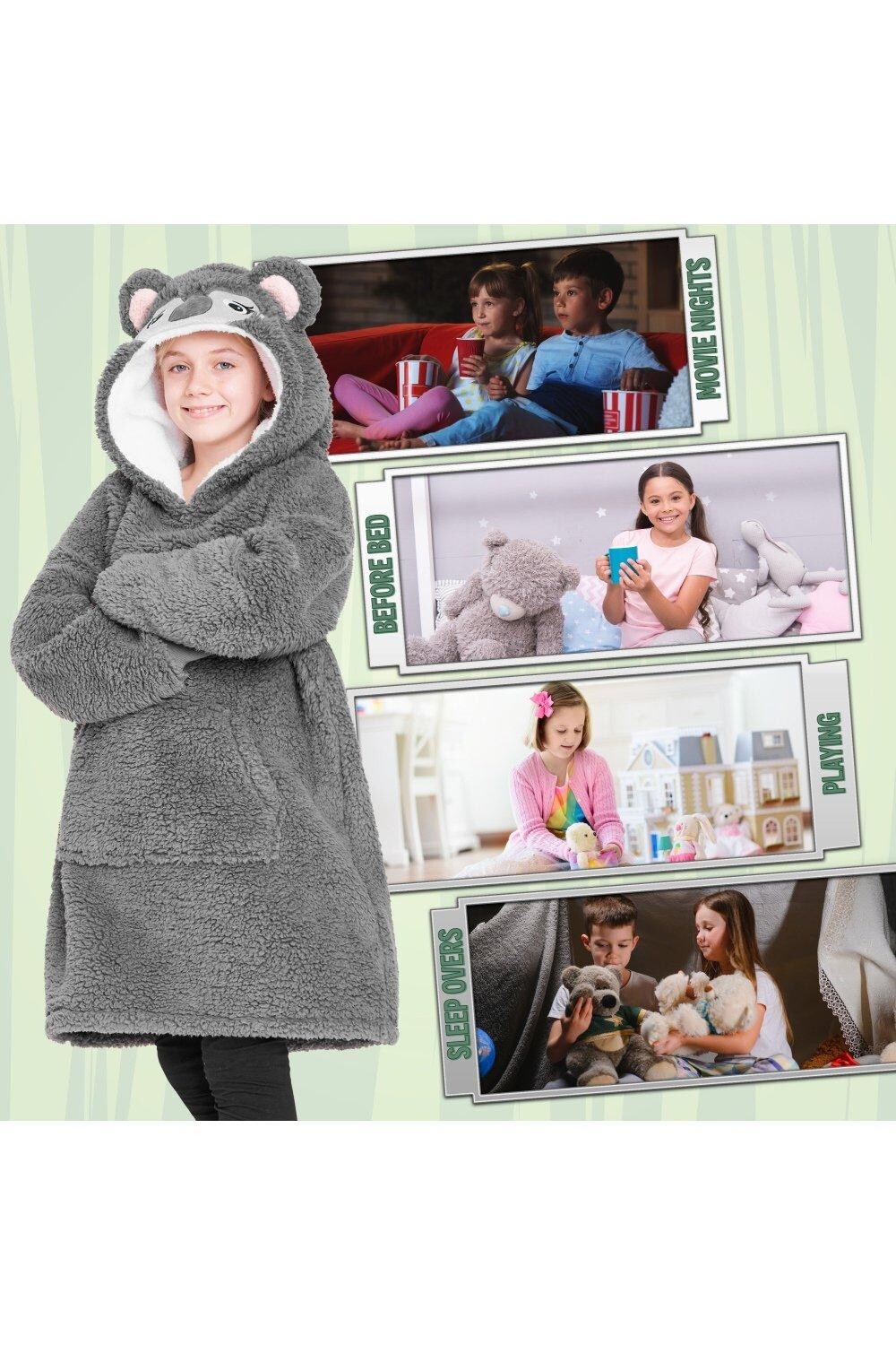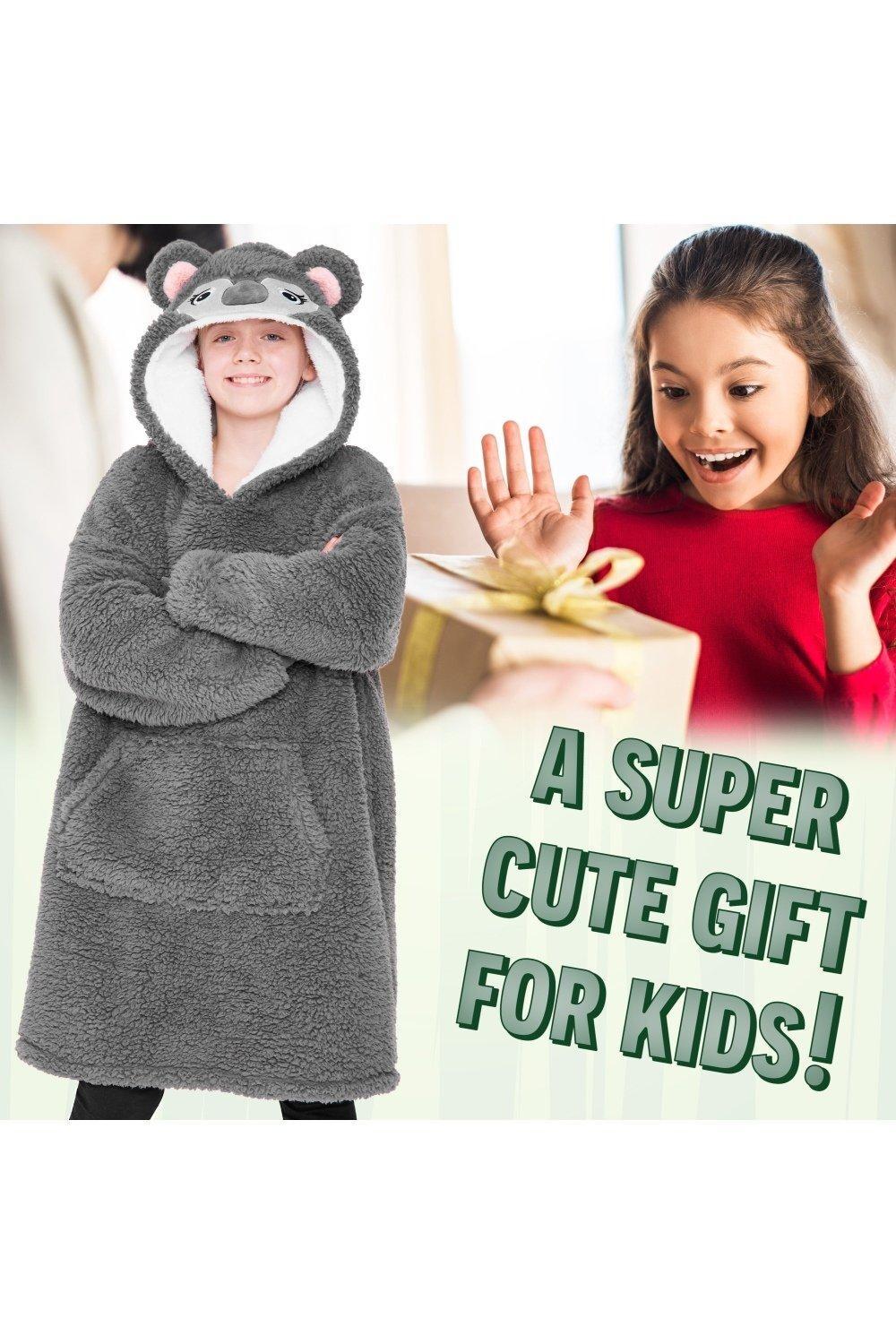 Оверсайз-толстовка с капюшоном для детей от CityComfort… Носите – Чувствуйте – Расслабьтесь. Наши теплые и пушистые детские худи оверсайз — именно то, что вам нужно! Теплая и уютная флисовая толстовка для детей. Один размер подходит всем — стиль оверсайз. Дизайн унисекс для мальчиков и девочек. В комплект входят одеяло с капюшоном в виде ленивца, коала, камуфляжное флисовое одеяло и толстовка с единорогом для девочек. Светящаяся в темноте толстовка с единорогом: для активации заряжайте под прямыми солнечными лучами. Функция свечения в темноте Идеально подходит для дней рождения, Рождества или любого особого случая