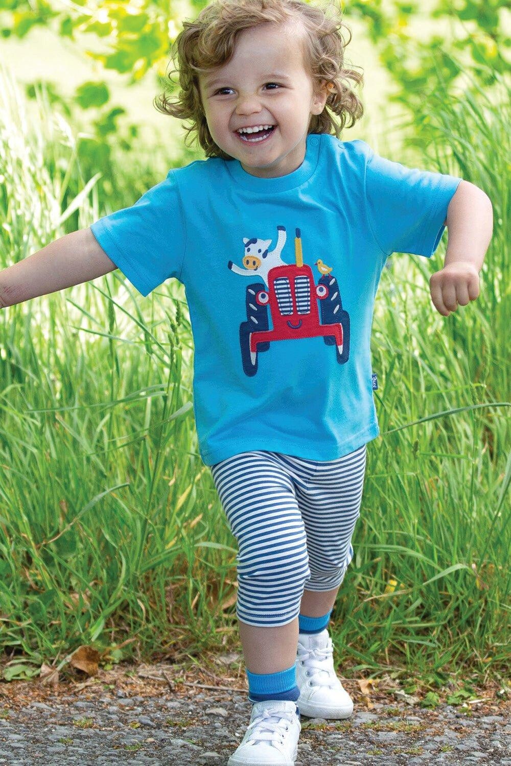 Внимание любителям фермерского двора! Наденьте яркую и красивую футболку с трактором, чтобы провести день, полный приключений. Этот топ с игривой аппликацией и застежкой на плече идеально сочетается с джоггерами с боковыми полосками от Kite, обеспечивая комфорт с ног до головы. Все готовы? Время идти.