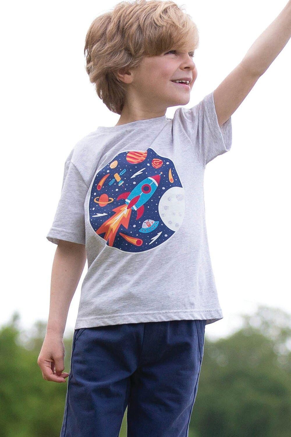 100% органический хлопок. Мы гордимся тем, что компания Control Union сертифицирована по Глобальному стандарту органического текстиля (GOTS). Космическая и ракетная печать. Серый мергель. Одинарный трикотаж. Короткие рукава. Круглая шея. Наличие координационных товаров. Сделано в Турции. Можно стирать в машине при 40 градусах или при 30 градусах, чтобы беречь планету.