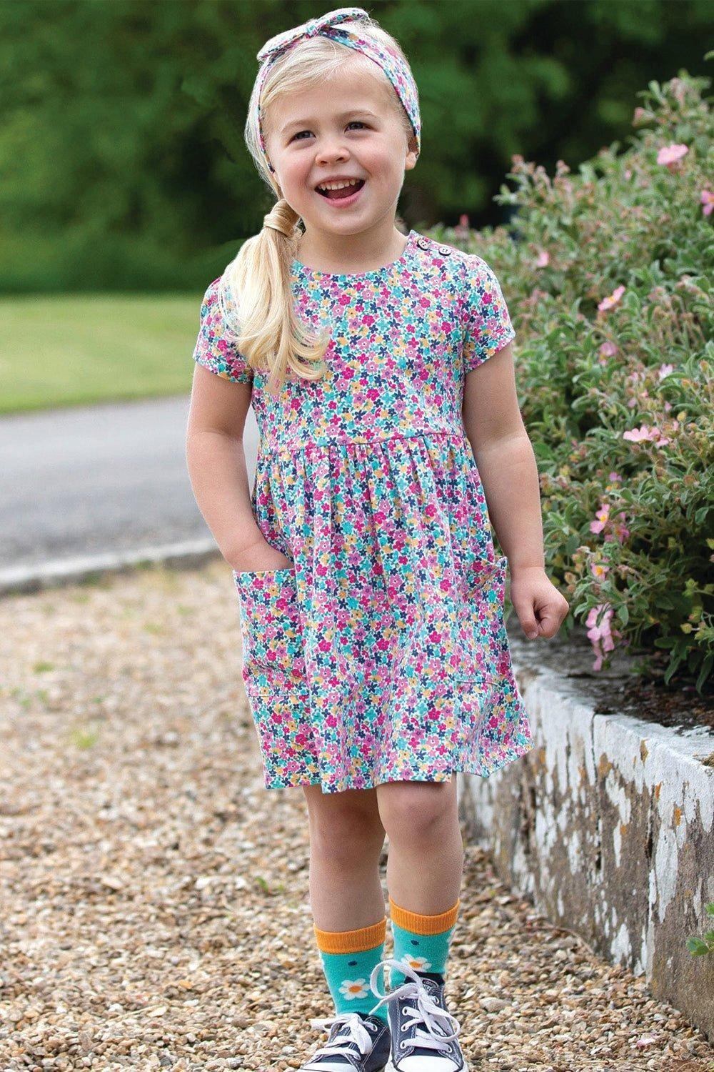 95% органический хлопок, 5% эластан. Мы гордимся тем, что компания Control Union сертифицирована по Глобальному стандарту органического текстиля (GOTS). Разноцветный лепестковый парфюмерный принт по всей поверхности. Одинарный трикотаж, немного тянущийся. Платье классического фасона. Открытие плеча на кокосовой пуговице (размер до 3 лет включительно). Боковые накладные карманы. Короткие рукава со сборками. Круглая шея. В наличии соответствующие товары. Сделано в Турции. Можно стирать в машине при 40 градусах или при 30 градусах, чтобы беречь планету.