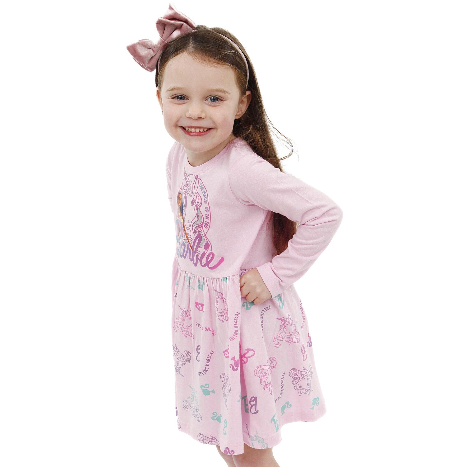 Улучшите гардероб вашего ребенка с помощью нашего очаровательного светлого розового платья Барби для девочек — восхитительного платья-единорога, сочетающего в себе комфорт, стиль и волшебство мира Барби. Это платье, изготовленное из 100% хлопка, обеспечивает не только модный стиль, но и непревзойденный комфорт. Это праздничное платье для девочек с круглым вырезом и длинными рукавами станет прекрасным выбором для весны, лета и зимы. Это платье для девочек, являющееся официально лицензированным товаром Барби, представляет собой билет в мир красочных единорогов и безграничного творчества. Эта детская одежда — идеальный выбор для таких случаев, как дни рождения и Рождество, поскольку она станет прекрасным подарком для девочек. Независимо от того, наслаждается ли ваша малышка вечером кинофильмом о Барби или игрой с куклами Барби, это платье для девочек с фигуристой юбкой станет прекрасным дополнением к ее вещам Барби. Закажите это светлое розовое платье Барби сегодня, и пусть мечты вашего ребенка займут центральное место. Исследуют ли они дом мечты Барби или играют с игрушкой Барби...