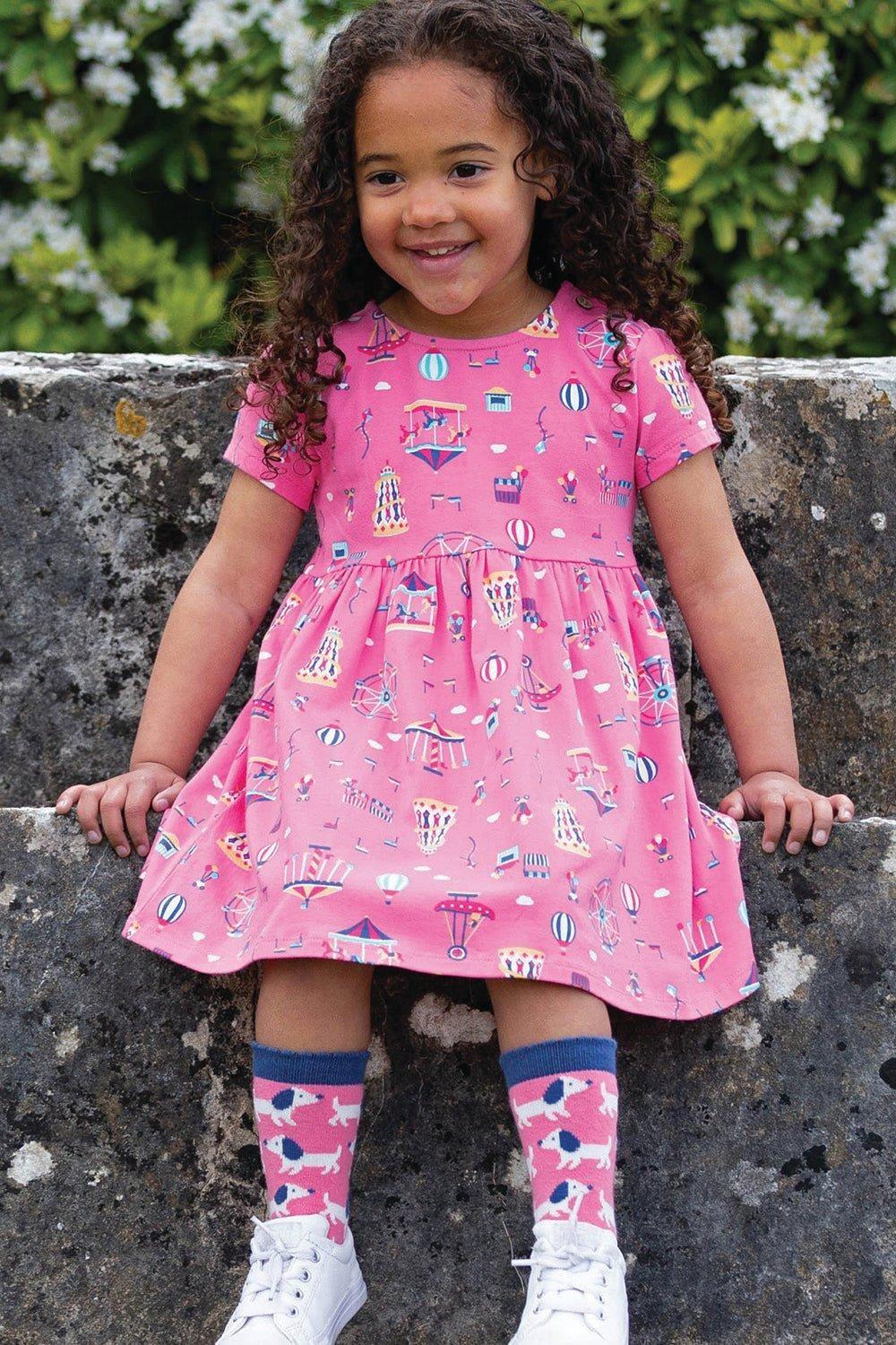 Сверните, сверните! Испытайте все веселье ярмарки в этом потрясающем платье. В нем представлено множество фаворитов: от суматохи и карусели до ларьков с сахарной ватой и ловушек! Классический стиль и оригинальный принт, безусловно, придают ему вау-эффект. Вы можете найти забавные ярмарочные принты для людей всех возрастов в самых разных стилях, чтобы братья, сестры и друзья могли объединиться.