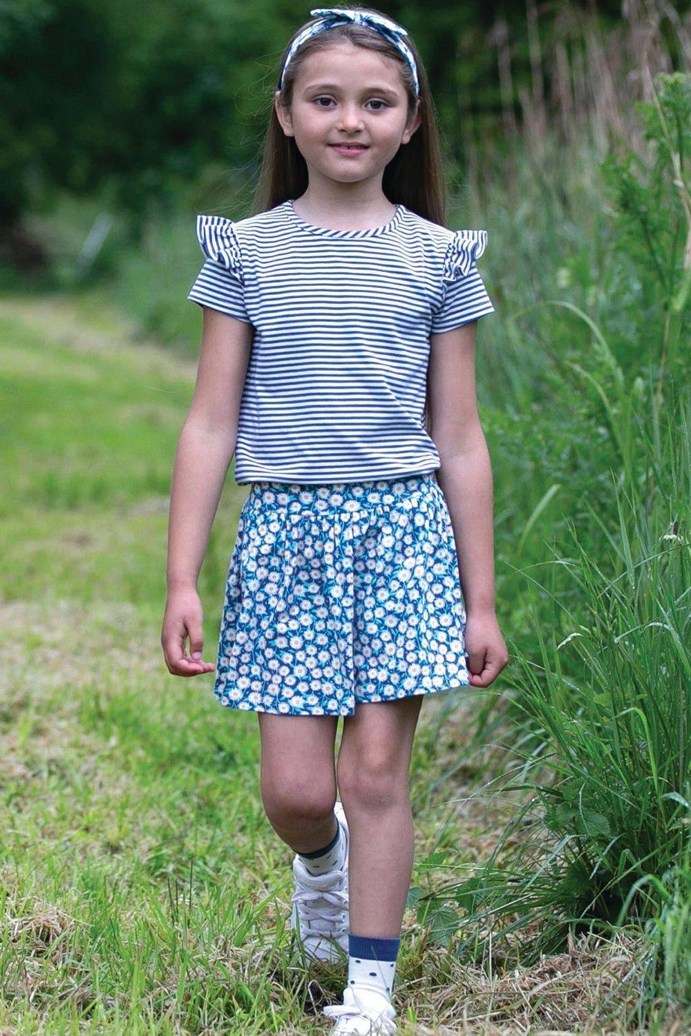 В этой футболке с флаттерби вы можете быть кем угодно. Изготовлено из универсальной полосатой ткани темно-синего и кремового цвета с красивой вставкой-оборкой на рукавах. Эта универсальная модель, выполненная из прекрасного органического хлопка, немного тянущегося, прекрасно сочетается с сарафанами Kite, шортами и подтягиваниями.