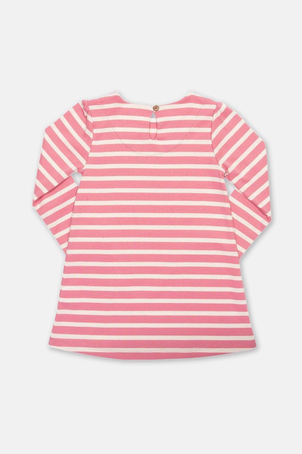 Классическое платье А-силуэта с изюминкой! Полоса, окрашенная в кремово-розовую пряжу, и контрастные накладные карманы с принтом лесной фауны. Очень мягкий и удобный в носке, идеально подходит для игр и многого другого.
