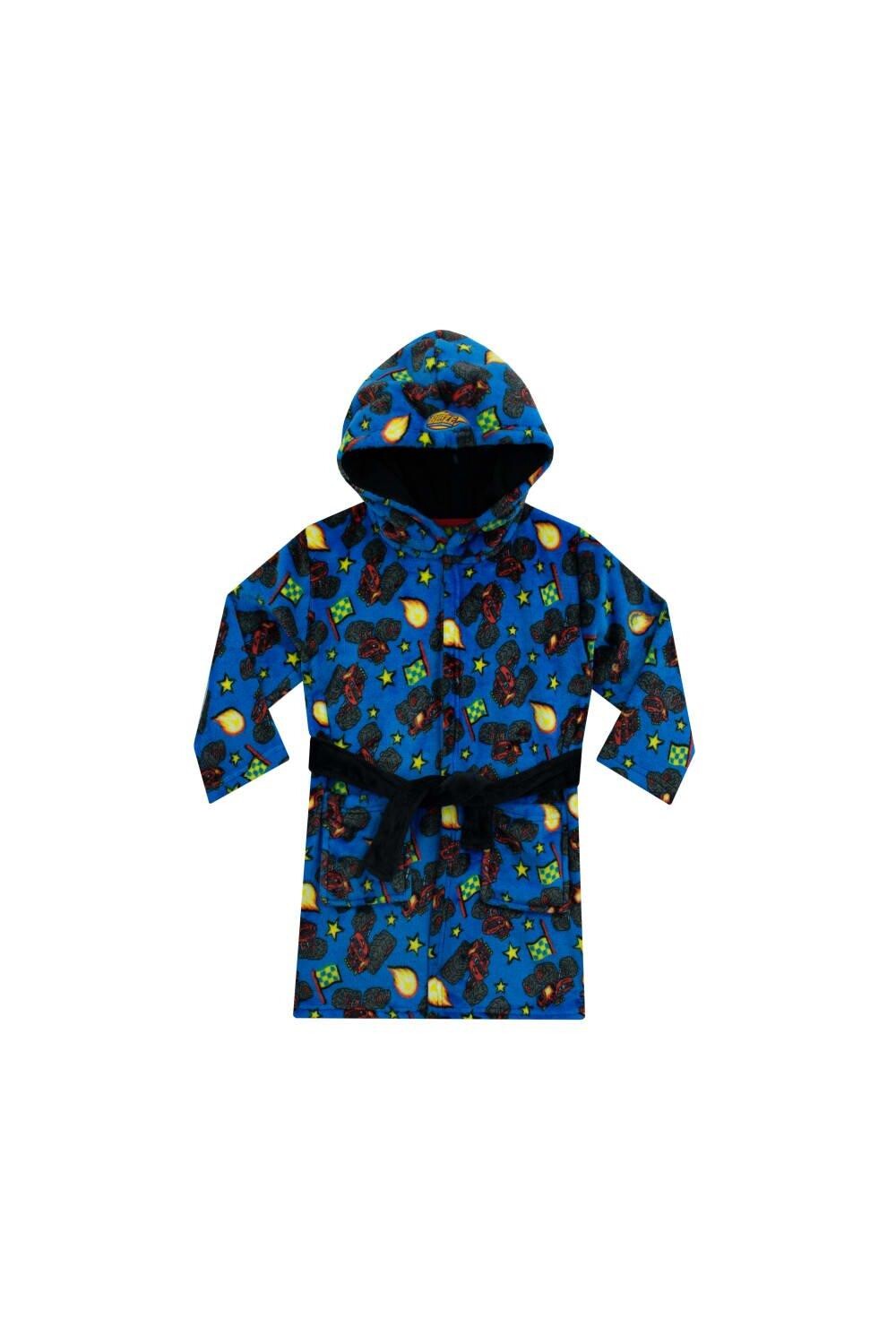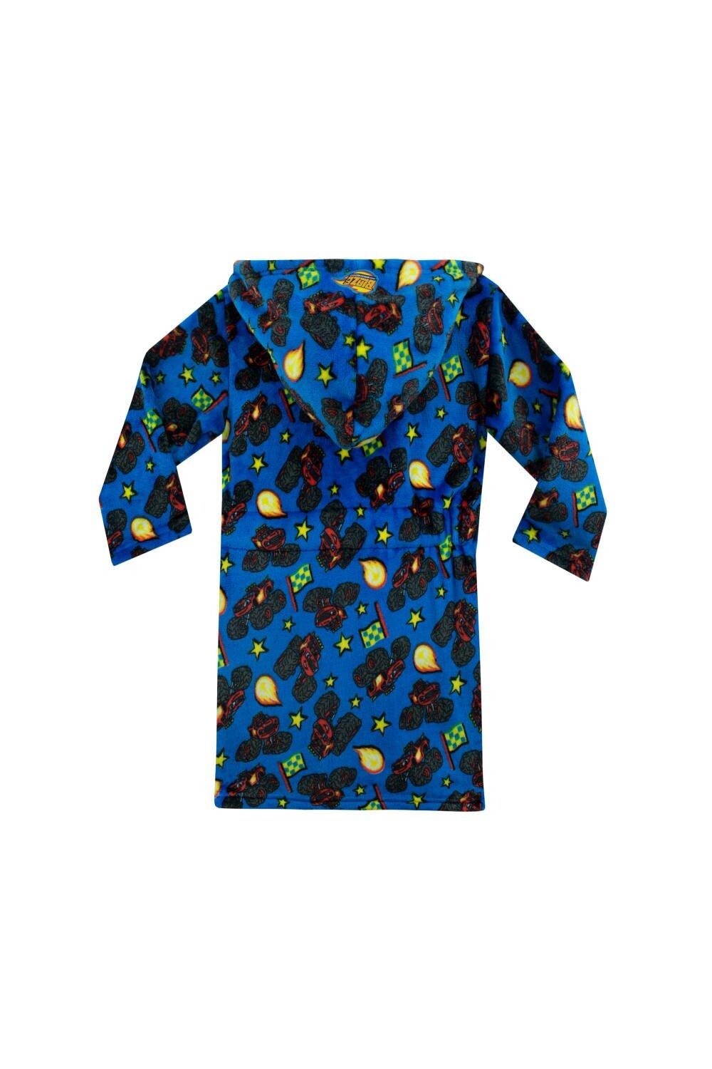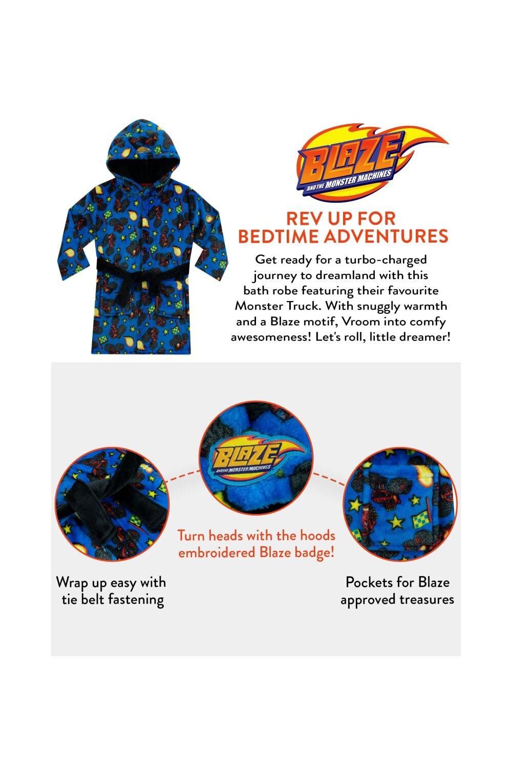 Дайте волю азарту гоночных трасс и монстр-траков прямо у себя дома! Этот халат для мальчиков «Blaze and the Monster Machines» создан для того, чтобы разжечь воображение юных гонщиков, позволяя им стильно просматривать сказки на ночь или утренние мультфильмы. Идеально сочетается с пижамой-монстр-траком. Это ночное платье, выполненное с восхитительным принтом в виде грузовиков-монстров, гоночных флагов и звезд, отражает суть всего веселья и динамичности. Этот халат для малышей ярко-синего оттенка с контрастным черным поясом на талии делает его ярким визуальным украшением и гарантирует, что ваш маленький гонщик всегда будет звездой. Но дело не только во внешности. В просторных карманах он может хранить свой мини-светильник, игрушки-монстры или даже небольшие подарки в виде грузовика. Вышитый значок Blaze на уютном капюшоне халата придает нотку аутентичности, делая эти детские халаты ценным приобретением для настоящих поклонников игрушек-грузовиков. Этот халат изготовлен из 100% полиэстера.
