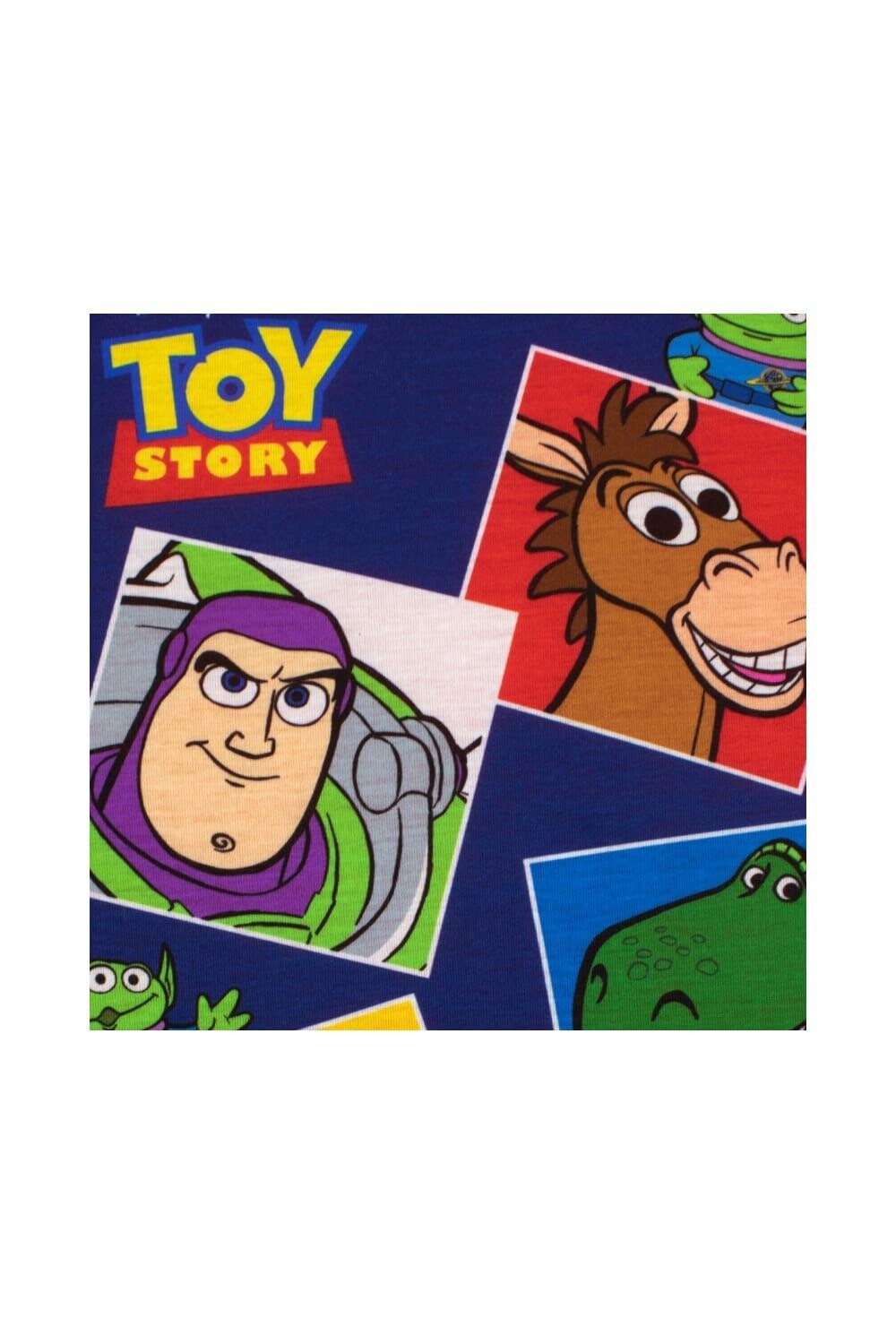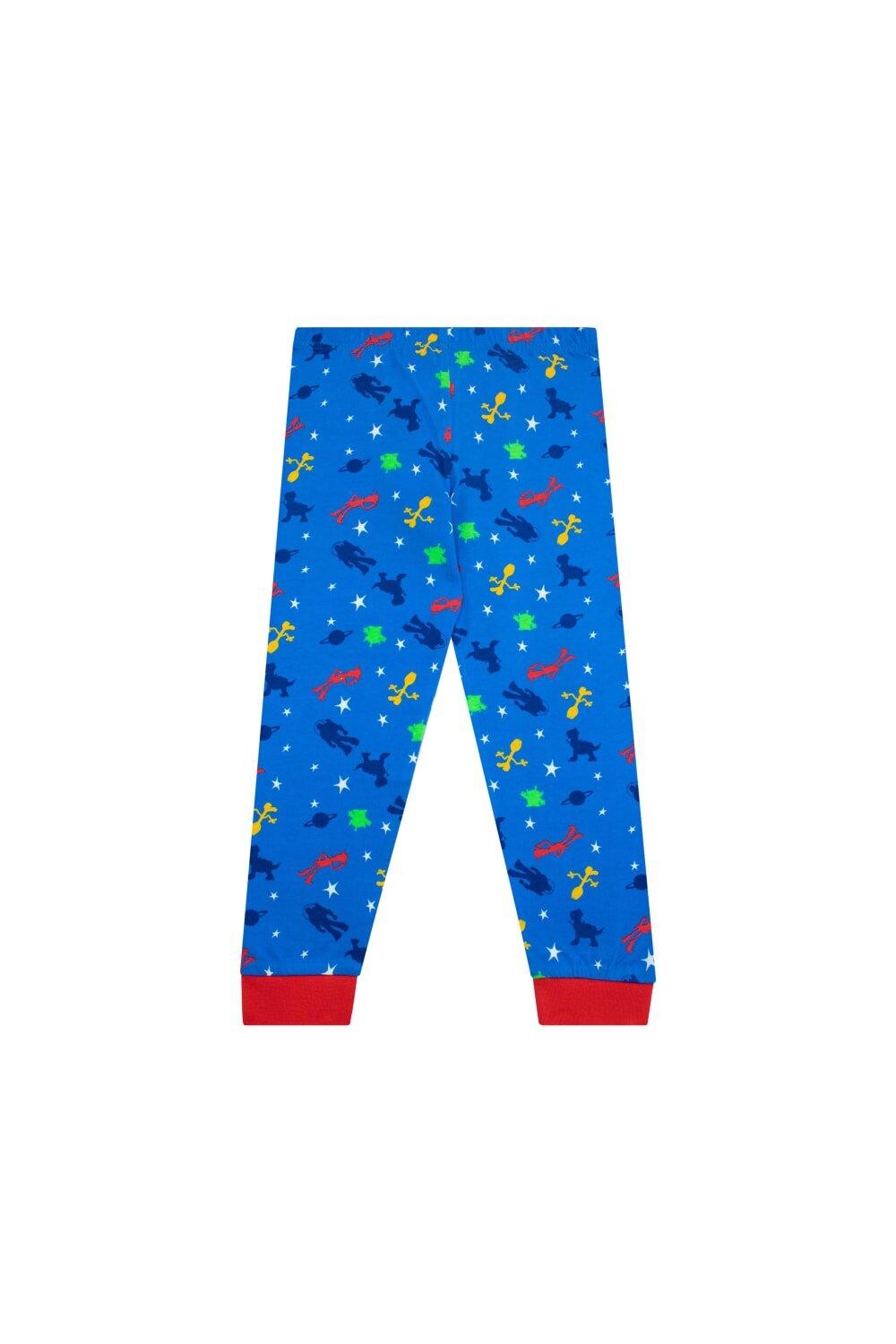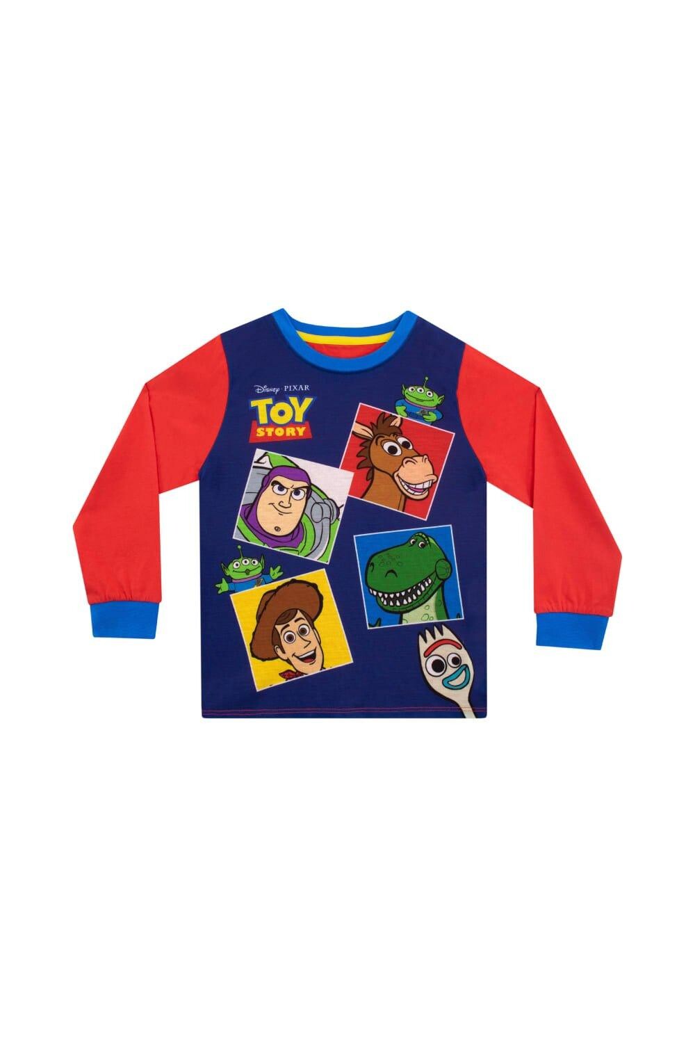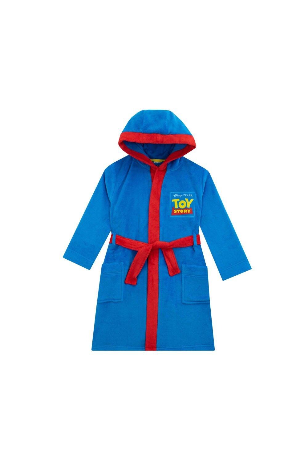 Комплект пижамы и халата для мальчика «История игрушек». Поклонникам «Истории игрушек» понравится этот синий флисовый халат с капюшоном, двумя карманами и красным поясом, а также значком с логотипом «Истории игрушек» на груди. Пижамный верх темно-синего цвета с красными рукавами украшен яркими принтами Базза Лайтера, Вуди, Форки, Буллсай, Рекса и LGM. В сочетании с синими пижамами в тон с силуэтами персонажей по всей поверхности, эластичным поясом и удобными манжетами на щиколотках.