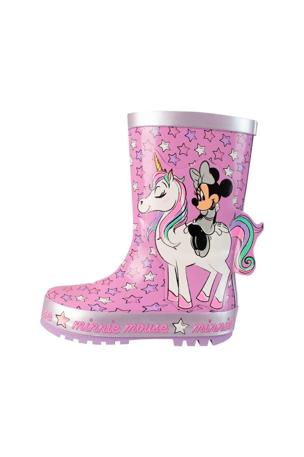 Резиновые сапоги Минни Маус для девочек. Добавьте немного волшебства в эти дождливые дни с этими очаровательными резиновыми сапогами Минни Маус! На этих розовых резиновых сапогах со звездами изображена трехмерная Минни верхом на единороге, а в основании ботинка имеется полоска с надписью «Минни Маус». Ваша маленькая мышка будет с удовольствием плескаться по лужам в этих милых резиновых сапогах! Ти хи!