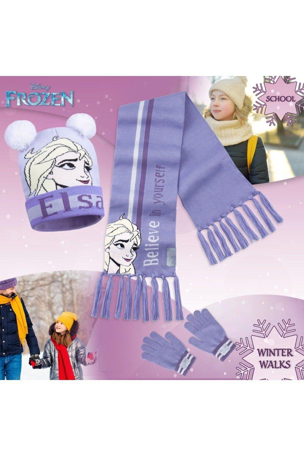 Комплект из шапки и перчаток из мультфильма «Холодное сердце» для девочек Disney Подготовьте своего маленького поклонника «Холодного сердца» к зиме с помощью этого полного зимнего набора аксессуаров, включающего Эльзу, милую шапку-бини с помпонами, а также подходящие перчатки и шарф с надписью «Поверь в себя». Сделано из мягкого и эластичного материала. Материал, этот набор создан для тепла и комфорта, пока они в движении, и идеально подходит для школы, игр на улице или зимних выходных. Ищете подарки для девочек-принцесс Диснея? Этот комплект зимних перчаток, шапки и шарфа станет идеальным подарком любому юному поклоннику «Холодного сердца» на Рождество, дни рождения или в качестве зимнего подарка. Материал 94% акрил, 5% нейлон, 1% эластан.
