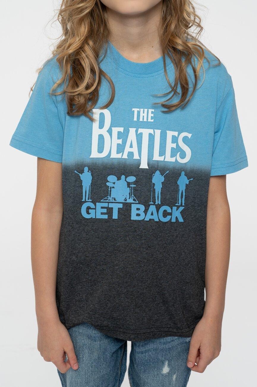 Официальная лицензированная детская футболка The Beatles с мотивом Get Back. Эта высококачественная футболка доступна в синем цвете. Потрясающая футболка с короткими рукавами, круглым вырезом и принтом спереди. Модель выполнена с эффектным принтом, нанесенным методом погружения. Экологичная заготовка футболки изготовлена с использованием переработанных материалов, состоящих из 60% переработанного хлопка и 40% переработанного полиэстера.