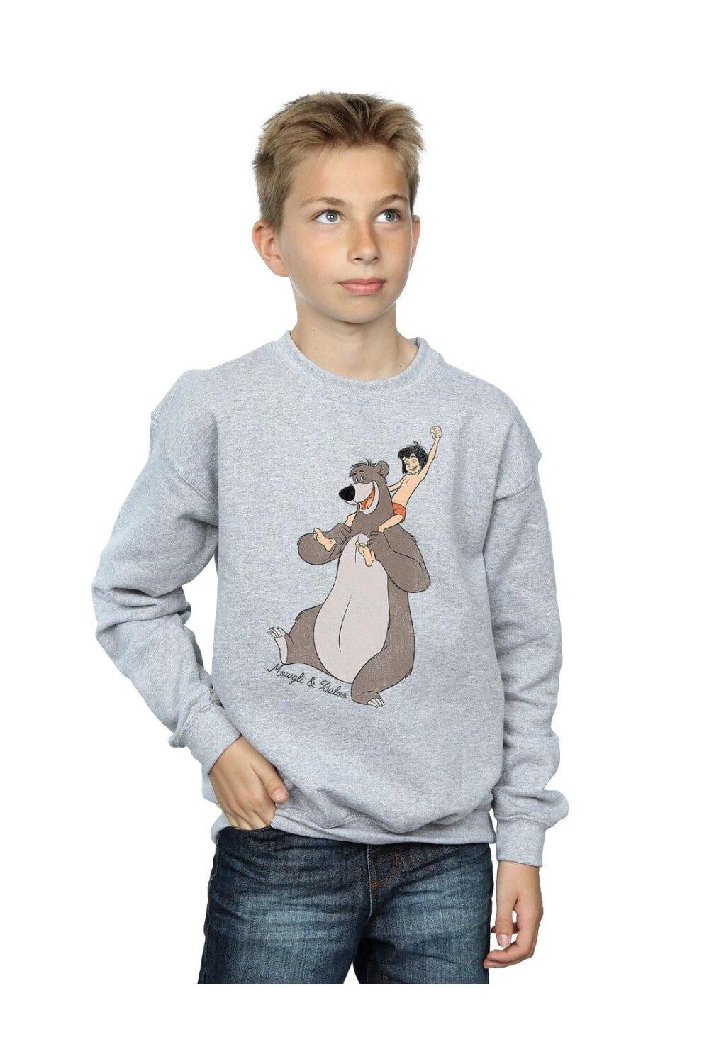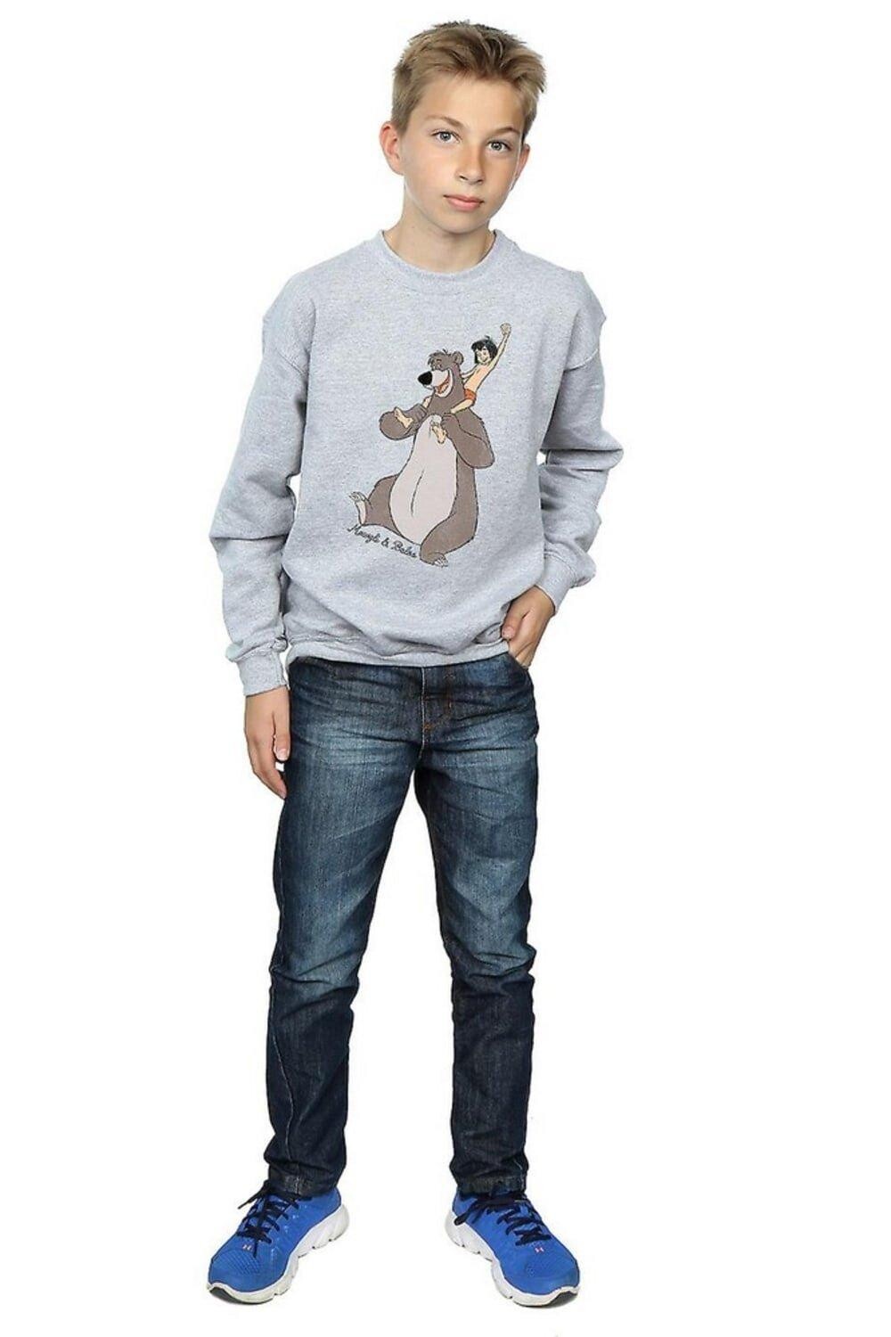 Материал: 50% хлопок, 50% полиэстер. Ткань: вереск. Персонажи: Балу, Маугли. Дизайн: печатный, текстовый. 153 г/м2. Технология ткани: тяжеловесная. Подол: ребристый. Тесьма на шее сзади, фирменная этикетка на шее. Вырез: круглый вырез, ребристый. Тип рукава: с длинными рукавами. Манжета: ребристая. Крепление: натянуть. 100% официальная лицензия. Упаковка: поворотная бирка.