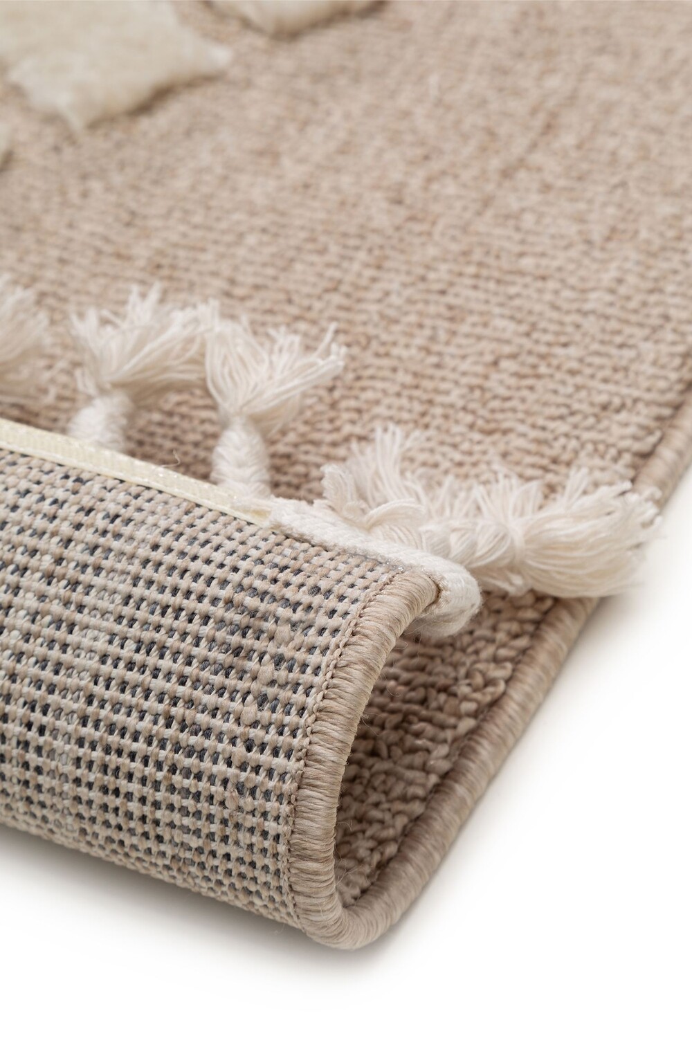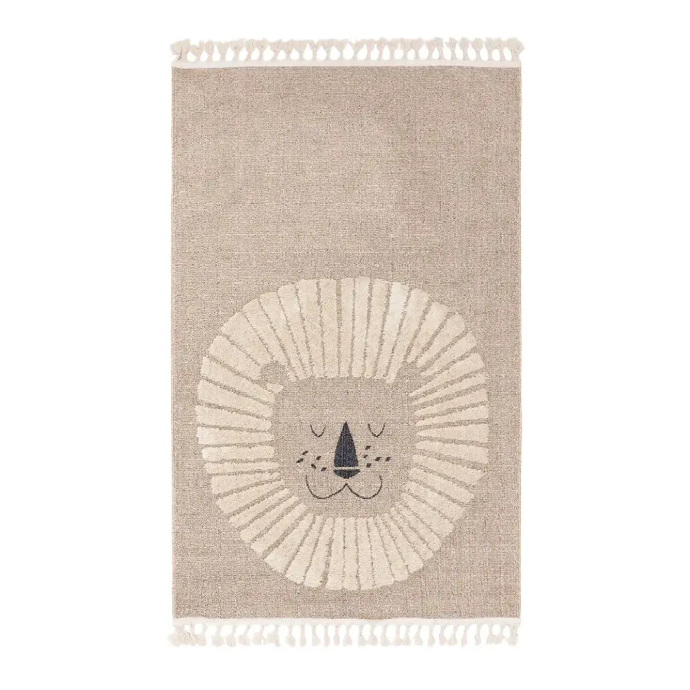 Детский коврик Momo соткан машинным способом из 100% полиэстера. Ковер Lytte бежевого цвета с принтом "лев". Размеры изделия: 120х180 см.