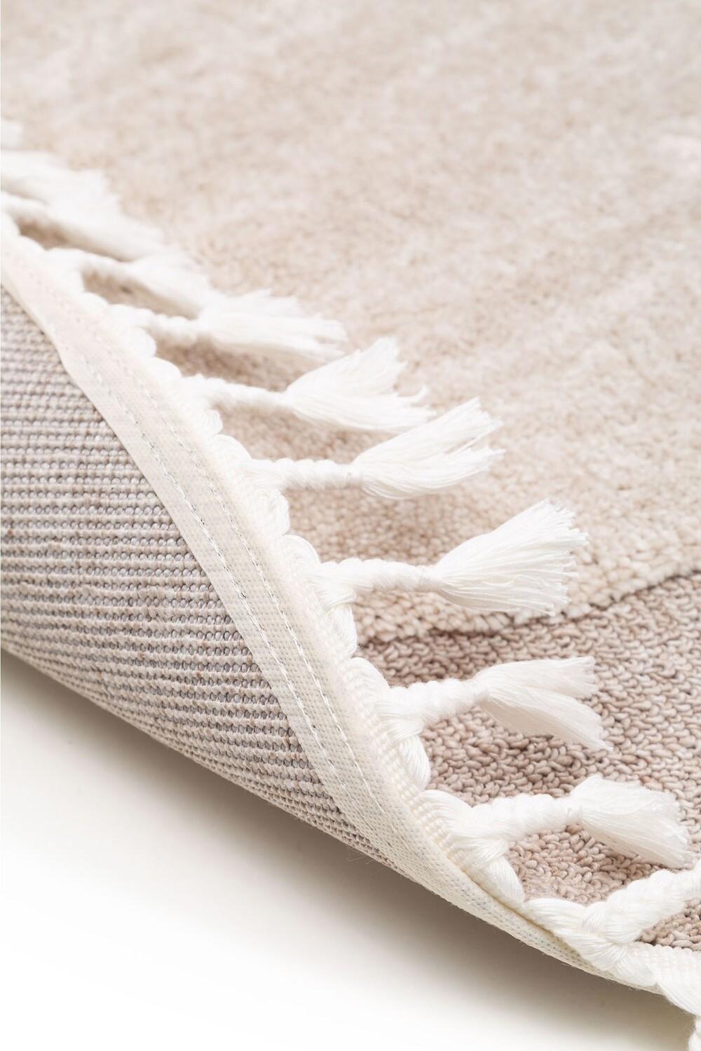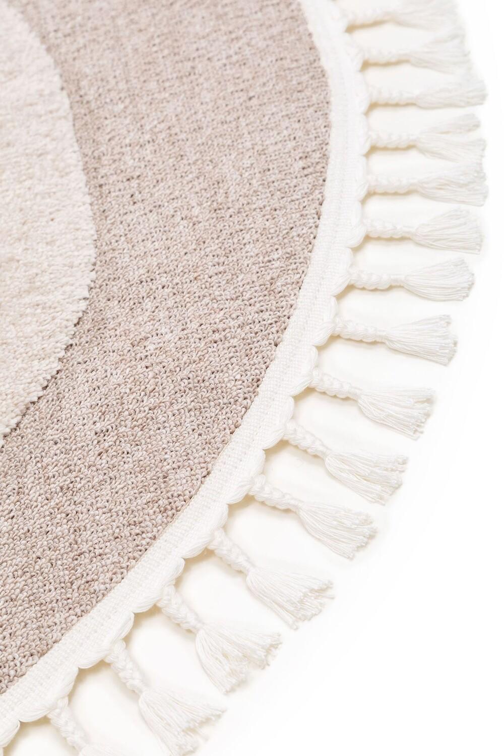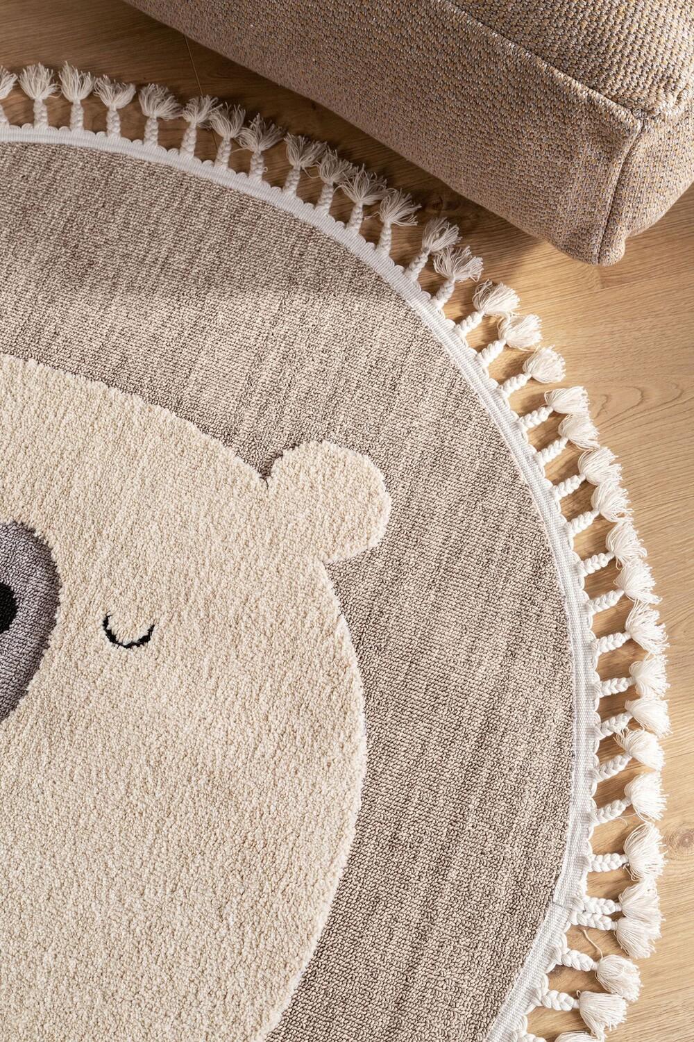 Детский коврик Momo соткан машинным способом из 100% полиэстера. Ковер Lytte бежевого цвета с принтом "мишка". Диаметр: 120 см.