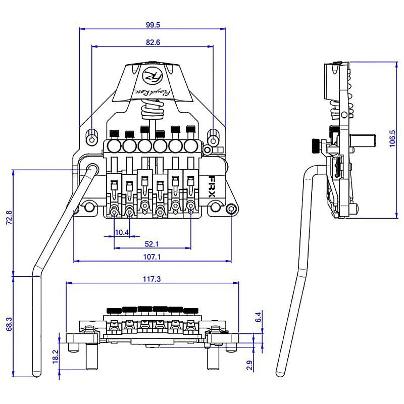 Floyd Rose продолжает свое инновационное наследие с совершенно новой системой тремоло FRX для поверхностного монтажа для гитар Les Paul, SG и Flying V. FRX является прямой заменой мостовой системы Tune-O-Matic и стопорной планки, в которой используются существующие отверстия для монтажных шпилек и не требуется никакой прокладки. Стопорная гайка крепится за существующей гайкой вашей гитары вместо крышки анкерного стержня.