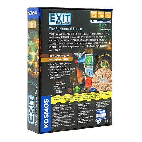 • Выход: The Game – The Enchanted Forest – это совместная игра, в которой вы работаете на время, чтобы разгадать 10 загадок. Действие происходит в обычном лесу, но вскоре расслабляющая атмосфера меняется. Неожиданно вы оказываетесь среди причудливых сказочных существ, и вас окружают загадочные загадки. Сможете ли вы когда-нибудь найти дорогу домой из этого, казалось бы, заколдованного леса? Дуэт дизайнеров Inka и Markus Brand объединились с KOSMOS, чтобы создать Exit, серию продуманных квестов. (Правда, в формате карточной игры. Вы можете играть в нее у себя в гостиной!). The Enchanted Forest работает так же, как и другие игры серии Exit. У вас и вашей команды есть колода из 26 карт-загадок с буквами AZ – но остановитесь! Пока не смотрите на них! Также есть буклет («блокнот») с аннотацией, знакомящей вас со сценарием. Далее следует массив страниц с текстом и изображениями. Вам будут поступать карты-загадки, которые вы вытащите из колоды от AZ в соответствующее время. Вам нужно решить их вместе с тем, какая информация содержится в буклете. Вам не потребуются предварительные общие знания, но вам, возможно, придется мыслить творчески. Когда вы думаете, что разгадали загадку, выровняйте предполагаемый код с помощью кругового колеса кодирования. Если вы правы, это покажет, правы вы или нет. Вы получите больше карточек-загадок. Ошибся? Попробуйте еще раз – что-то вы пропустили? Как и в настоящих квест-комнатах, здесь есть «подсказки» (мини-колода для каждой загадки), которые подтолкнут вас в правильном направлении, если вы застрянете. Вы записываете время, которое вам потребовалось (за вычетом количества использованных подсказок), чтобы получить итоговый результат игры. Сможете ли вы и ваша команда выбраться из странного Зачарованного леса? Серия игр Exit имеет разную сложность. Зачарованный лес имеет вес 2/5 (1/5 — легко, 5/5 — очень сложно). Это идеальное введение в серию игр Exit, но это далеко не прогулка по лесу! Обратите внимание, что это разовое занятие, также известное как «разрушимая игра». Возможно, вам придется вырезать, сложить и нарисовать некоторые компоненты…. Количество игроков: 1-4 игрока. Время: 45-90 минут. Возраст: 10+
