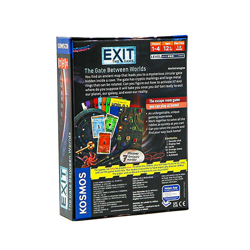 • Exit: The Game – The Gate Between Worlds — это кооперативная игра, в которой вы работаете на время. разгадать 10 загадок. Вы и ваши друзья наткнулись на таинственные врата в глубинах. пещеры. Вы знаете, что говорят о кошках и любопытстве, верно? Слишком поздно – это необычно. ворота! Вы чувствуете, что вас затягивает, а затем темнота берет верх. Тебя выплюнут на другой стороне. портал, уже не в пещере. Теперь ты где-то в другом месте – где-то странном, где-то самом. странно. Сможете ли вы вместе найти дорогу домой? Дизайнерский дуэт Inka и Markus Brand объединились с KOSMOS для создания серии Exit. продуманные квесты. (Правда, в формате карточной игры. Вы можете играть в нее у себя в гостиной!). The Gate Between Worlds работает так же, как и другие игры серии Exit. Ты. и у вашей команды есть колода из 26 карт-загадок с буквами AZ – пока не смотрите на них! Также есть. буклет («блокнот») с аннотацией, знакомящей вас со сценарием. Далее следует массив страниц. текст и изображения. Вам будут капать карты-загадки, которые вы вытаскиваете из колоды AZ в соответствующем месте. время. Вам нужно решить их вместе с тем, какая информация содержится в буклете. Вам не понадобится. предварительные общие знания, но вам, возможно, придется мыслить творчески. Когда вы думаете, что разгадали загадку, выровняйте подозрительный код, используя круговое кодирование.
